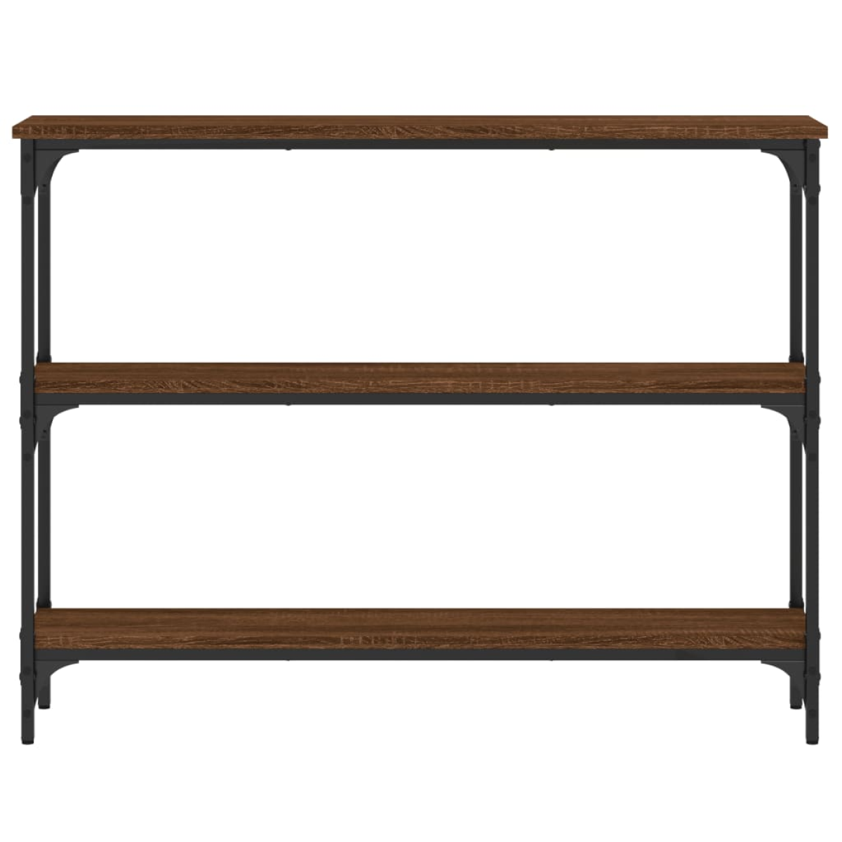 Add a touch of elegance to your entryway, living room, or hallway with this stylish console table. Durable material: The engineered wood is of exceptional quality with smooth surface and also features strength, stability and resistance to moisture. Made of engineered wood, the sofa table is easy to clean.Ample storage space: The hall table offers ample storage space for keeping your magazines, books, decorative items, and other daily essentials well-organised and within reach.Adjustable feet: Four adjustable feet with plastic pads keep the hallway table balanced on uneven ground and increase stability.Metal frame: The metal frame adds an industrial style to your interior while ensuring durability and stability. Warning:To prevent it being overturned, this product must be used with the provided wall attachment device.