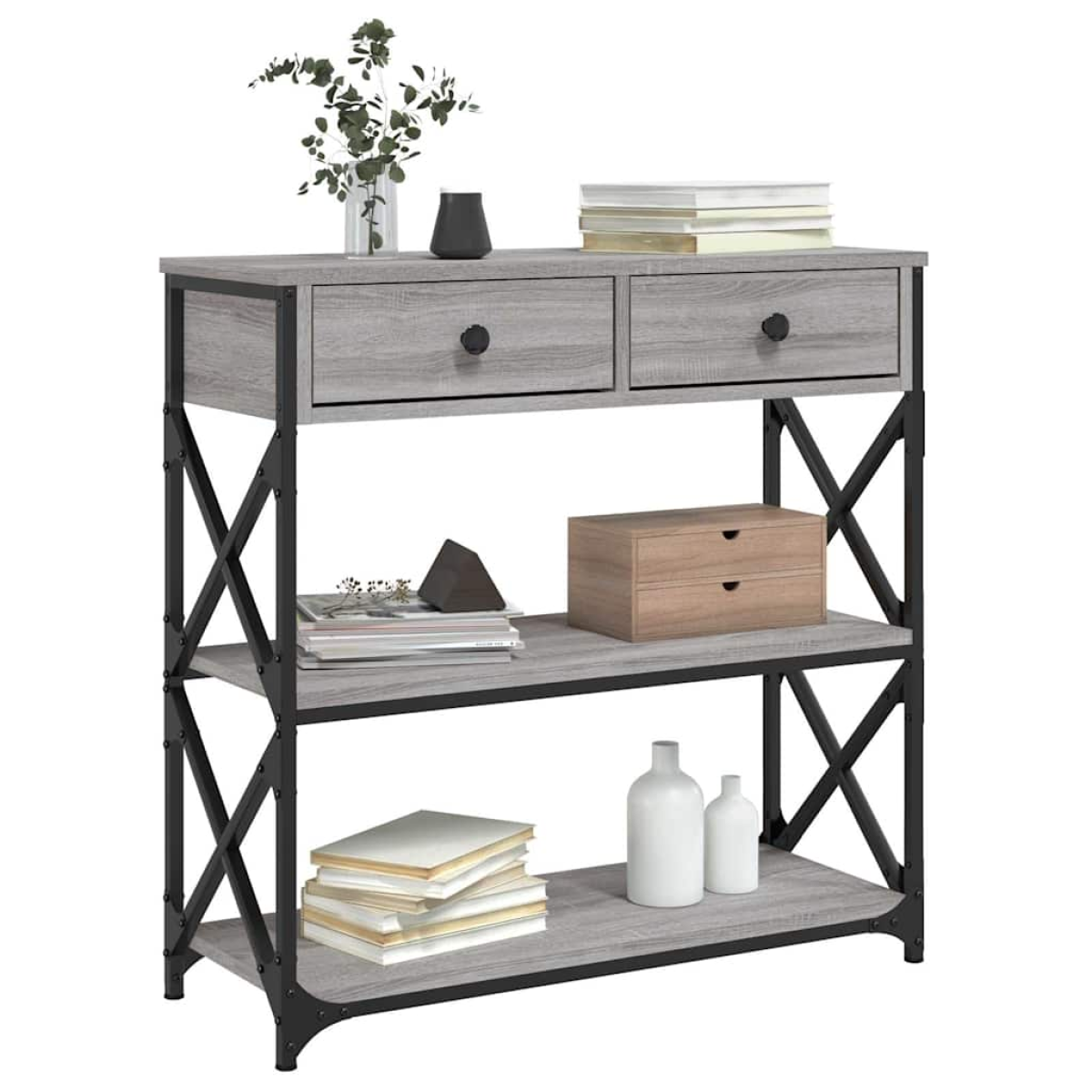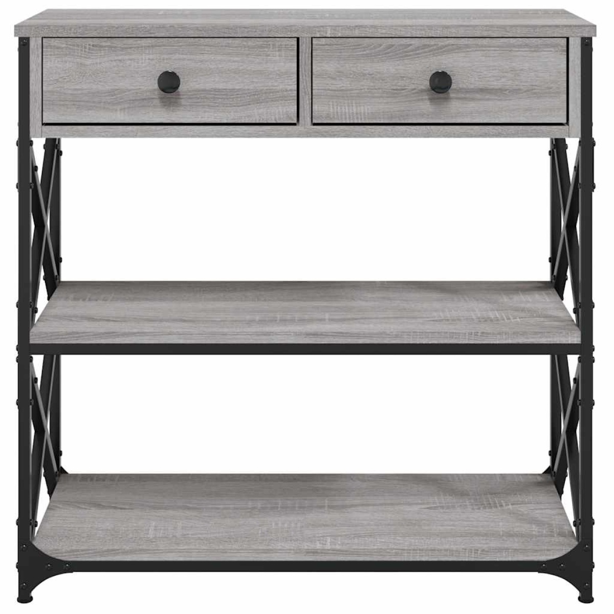 Add a touch of elegance to your entryway, living room, or hallway with this stylish console table. Durable material: The engineered wood is of exceptional quality with smooth surface and also features strength, stability and resistance to moisture. Made of engineered wood, the sofa table is easy to clean.Ample storage space: The hall table offers ample storage space for keeping your magazines, books, decorative items, and other daily essentials well-organised and within reach.Adjustable feet: Four adjustable feet with plastic pads keep the hallway table balanced on uneven ground and increase stability.Metal frame: The metal frame adds an industrial style to your interior while ensuring durability and stability. And the entry table has X-frame crossbars for added stability, so you don't have to worry about wobbling on the floor. Warning:To prevent it being overturned, this product must be used with the provided wall attachment device.