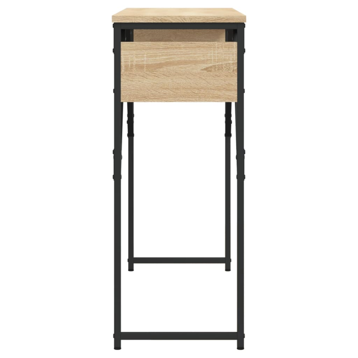 Add a touch of elegance to your entryway, living room, or hallway with this stylish console table. Durable material: The engineered wood is of exceptional quality with smooth surface and also features strength, stability and resistance to moisture. Made of engineered wood, the sofa table is easy to clean.Ample storage space: The hall table offers ample storage space for keeping your magazines, books, decorative items, and other daily essentials well-organised and within reach.Adjustable feet: The adjustable feet with plastic pads keep the hallway table balanced on uneven ground and increase stability.Metal frame: The metal frame adds an industrial style to your interior while ensuring durability and stability. Warning:To prevent it being overturned, this product must be used with the provided wall attachment device.