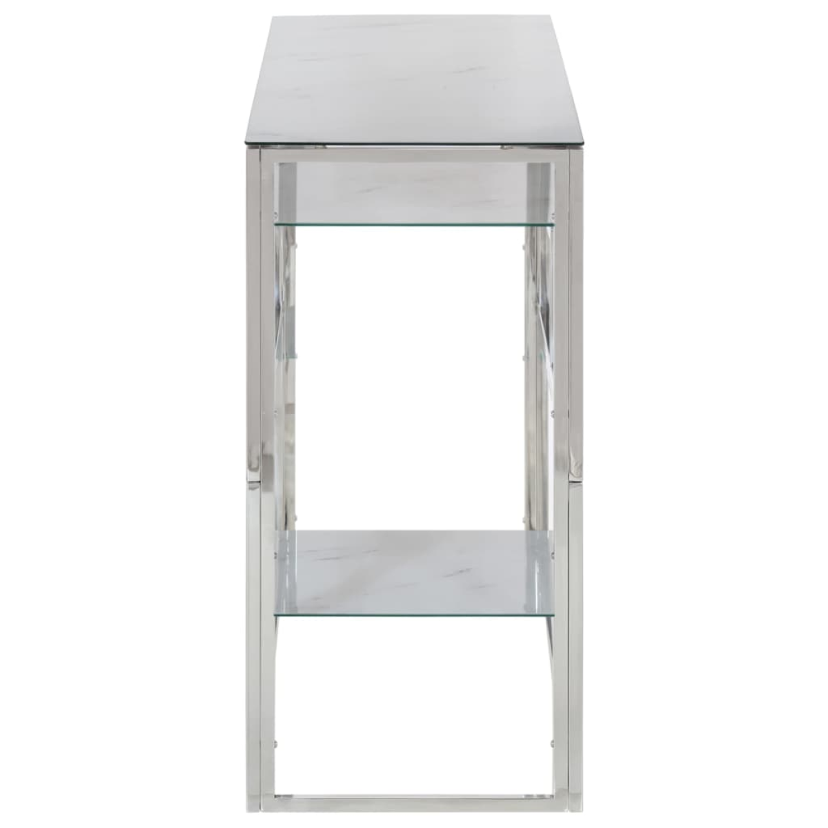 Combining functionality and beauty, this console table will be the focal point of your room. Glass top with white marble finish: The top of the sofa table provides a secure and ample surface to place vases, potted plants, or other decorative items. Sturdy and stable frame: The stainless steel frame of the hall table ensures sturdiness and stability. Easy maintenance: This hallway table with stain-resistant surface is easy to wipe clean and you can effortlessly keep the table looking its best. Simple design: This hallway console table has a simple and modern design that complements any room decor.