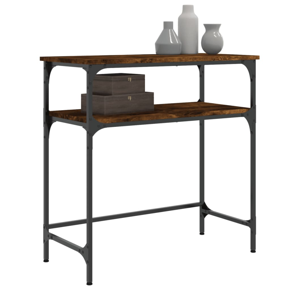 Add a touch of elegance to your entryway, living room, or hallway with this stylish console table. Durable material: The engineered wood is of exceptional quality with smooth surface and also features strength, stability and resistance to moisture. Made of engineered wood, the sofa table is easy to clean.Ample storage space: The hall table offers ample storage space for keeping your magazines, books, decorative items, and other daily essentials well-organised and within reach.Adjustable feet: Four adjustable feet with plastic pads keep the hallway table balanced on uneven ground and increase stability.Metal frame: The metal frame adds an industrial style to your interior while ensuring durability and stability. Warning:To prevent it being overturned, this product must be used with the provided wall attachment device.