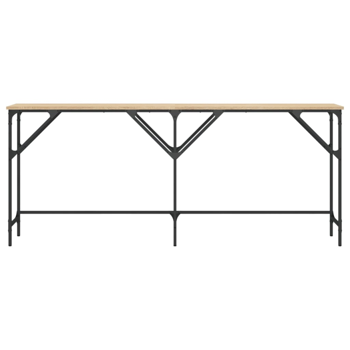 Add a touch of elegance to your entryway, living room, or hallway with this stylish console table. Durable material: The engineered wood is of exceptional quality with smooth surface and also features strength, stability and resistance to moisture. Made of engineered wood, the sofa table is easy to clean.Sturdy tabletop: The sturdy tabletop of the hall table is perfect for placing your framed photos, potted plants, and other decorative items.Adjustable feet: The adjustable feet with plastic pads keep the hallway table balanced on uneven ground and increase stability.Metal frame: The metal frame adds an industrial style to your interior while ensuring durability and stability. Warning:To prevent it being overturned, this product must be used with the provided wall attachment device.