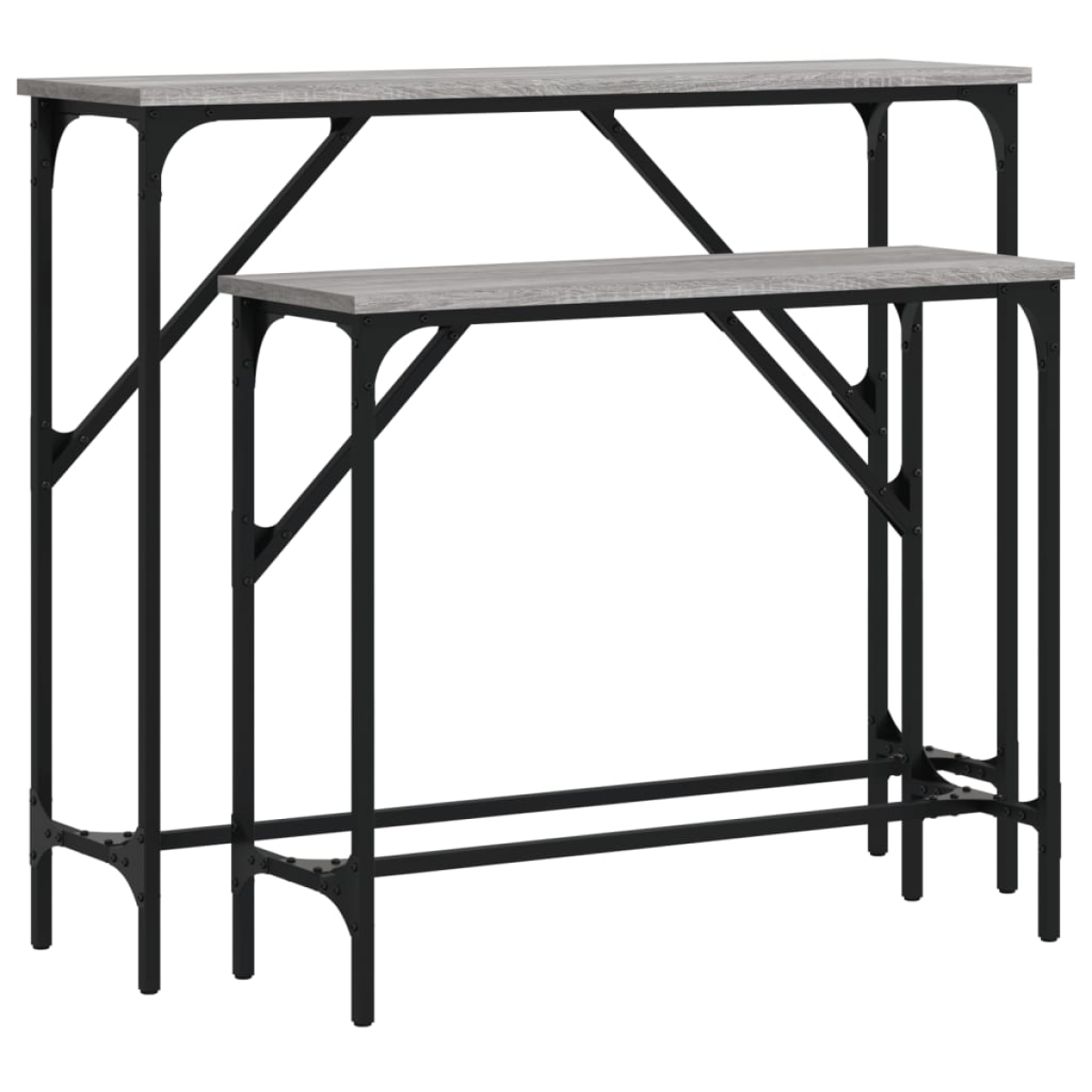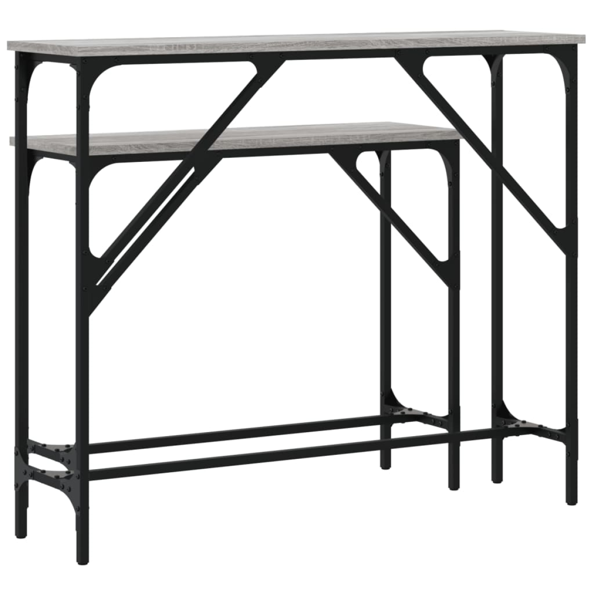 Add a touch of elegance to your entryway, living room, or hallway with these stylish console tables. Durable material: The engineered wood is of exceptional quality with smooth surface and also features strength, stability and resistance to moisture. Made of engineered wood, the sofa table is easy to clean.Sturdy tabletop: The sturdy tabletop of the hall table is perfect for placing your framed photos, potted plants, and other decorative items.Adjustable feet: Four adjustable feet with plastic pads keep each hallway table balanced on uneven ground and increase stability.Metal frame: The metal frame adds an industrial style to your interior while ensuring durability and stability. Warning:To prevent it being overturned, this product must be used with the provided wall attachment device.