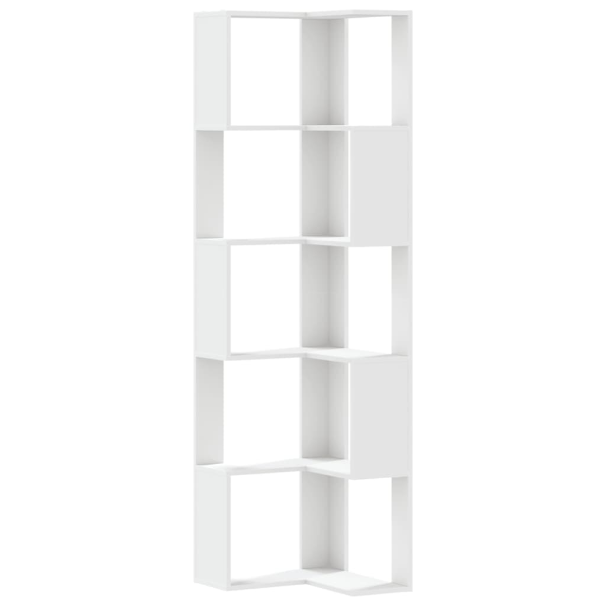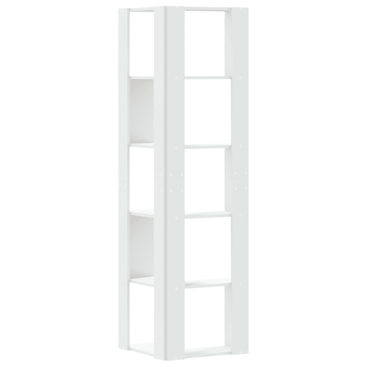 This corner bookcase provides a stylish and efficient way to showcase your treasured belongings while also keeping them perfectly arranged and easily accessible. Stable and durable material: Engineered wood is a durable and stable material with a smooth surface that is resistant to moisture, warping, and splitting, making it a reliable choice for a variety of projects.5-Tier bookshelf: This bookshelf is designed with 5 tiers, providing ample space to display your books, family photos, potted plants, and more, making your space more elegant and tidier.Maximise corner space: This corner book cabinet efficiently utilises empty corner space to provide ample storage while taking up minimal floor space.Wide applications: This compact book rack is versatile and ideal for small spaces including living rooms, bedrooms, offices, kitchens, and more. Good to know:To prevent it from tipping over, this product must be used with the provided wall attachment device.