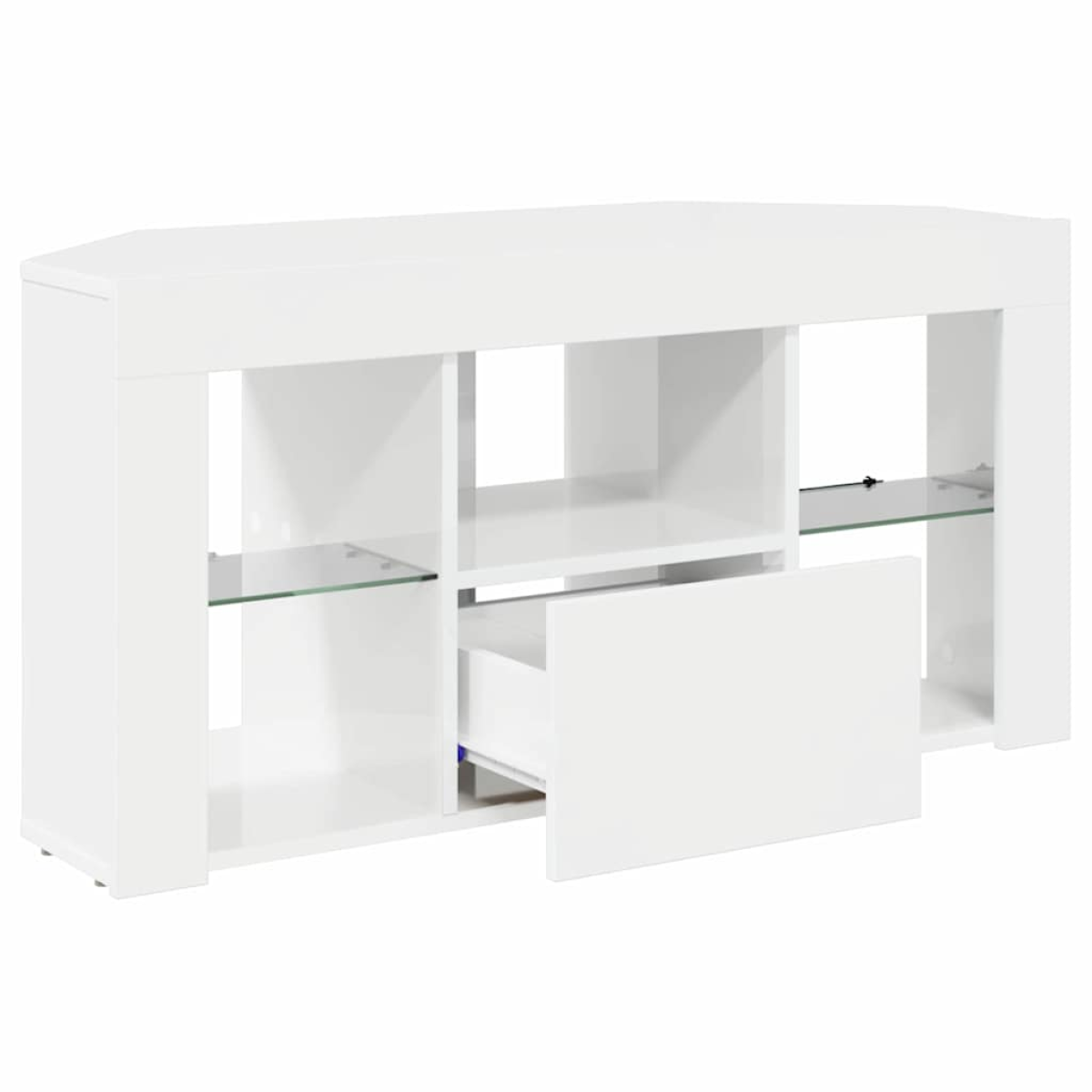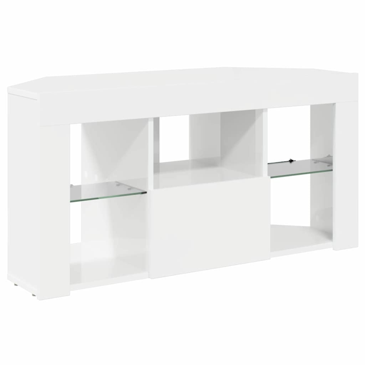This Modern Corner LED TV Cabinet is a sophisticated piece of furniture designed for the contemporary home. Its sleek appearance and efficient use of space make it an ideal choice for any living room. Whether you're looking to enhance your media viewing experience or simply want a stylish addition to your room, this cabinet meets the mark with its clean lines and minimal ornamentation lending a touch of elegance to your space. Engineered Wood Construction Crafted for strength and elegance, this cabinet uses premium engineered wood known for its abrasion resistance. The matte finish adds a touch of sophistication, making it resistant to scratches and daily wear. It integrates seamlessly with modern interiors, offering both a refined look and reliable performance over time. Optimal Storage Solutions Designed with ample space to store your electronics and media, this cabinet offers well-organized shelves and compartments. Ideal for neatly housing game consoles, DVD players, and remotes, it keeps your space tidy and clutter-free, enhancing the functionality and aesthetics of your living room. Efficient LED Lighting Integrated LED lighting provides ambient illumination, enhancing your viewing experience and setting the perfect mood for evening relaxation. USB-powered lights offer energy-efficient lighting, easily adjustable to suit your ambiance preferences. Space-Saving Design This corner cabinet maximizes unused spaces, perfectly fitting into corners to free up room for more decorating flexibility. Its wall-mounted feature minimizes floor usage, contributing to an open, airy living area without compromising style or storage. Simple Maintenance To maintain its pristine appearance, gently wipe the surface with a damp cloth. Ensure secure placement by affixing it to the wall, preventing tipping and increasing safety, especially important in homes with pets or young children.