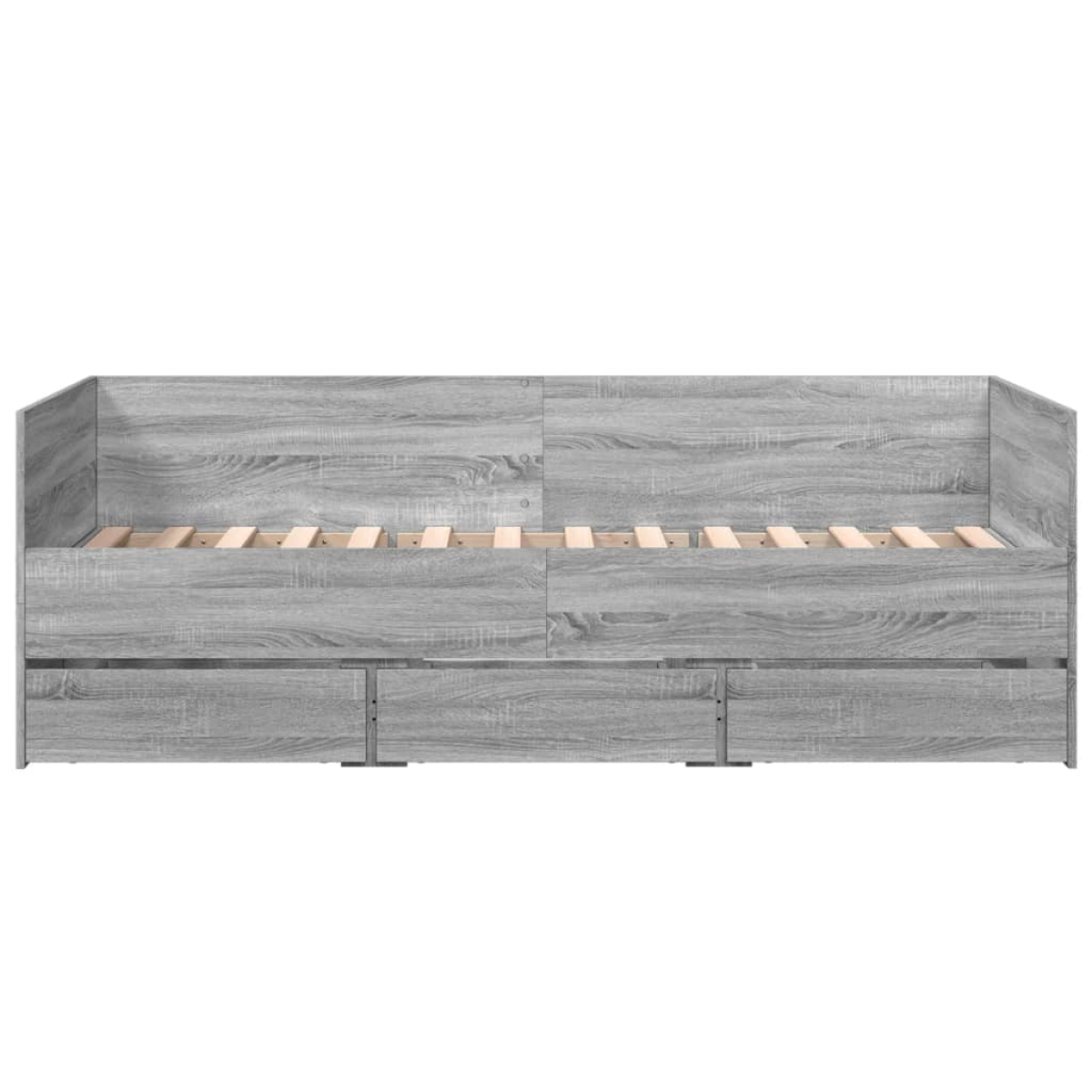 This 2-in-1 daybed with drawers, serving as both a sofa and bed, makes a practical and eye-catching addition to your living room or bedroom. Versatile daybed: The sofa bed functions as a sofa during the day and easily converts into a double bed at night by pulling out the trundle, providing a convenient solution for hosting guests and maximising space. Ample storage space: This guest bed has 3 drawers with wheels that provide ample space for storing your clothes, socks, toys, cushions, etc.Solid construction: This day bed sofa has a sturdy frame made of engineered wood. The engineered wood is of exceptional quality with a smooth surface and features strength, stability and resistance to moisture. Good to know:The delivery includes a daybed frame only. The mattress is not included. You can check our shop for the matching mattresses.