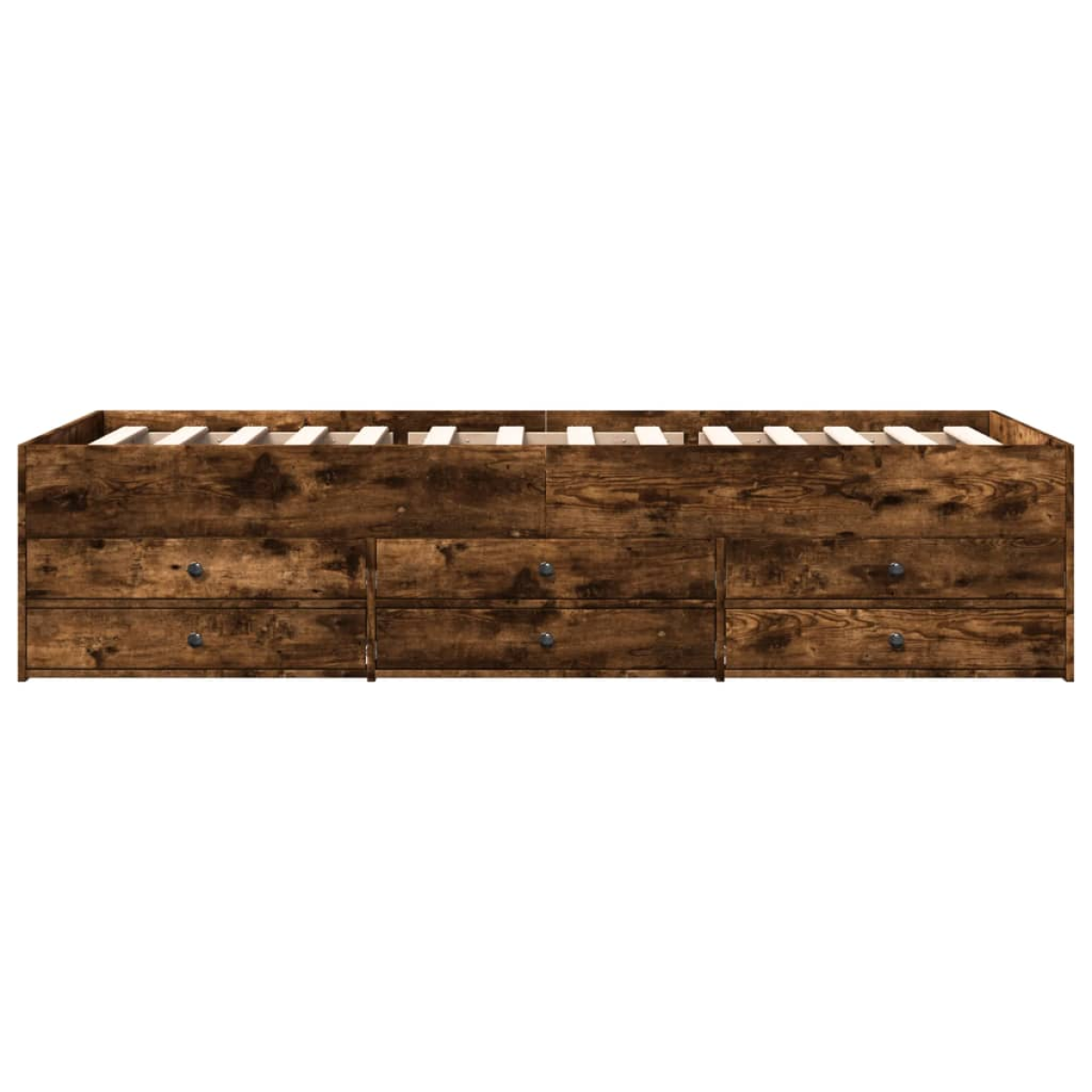 This 2-in-1 daybed with drawers, serving as both a sofa and bed, makes a practical and eye-catching addition to your living room or bedroom. Versatile daybed: The sofa bed functions as a sofa during the day or as a bed at night, providing a convenient solution for hosting guests and maximising space. Ample storage space: This guest bed has 6 drawers with wheels that provide ample space for storing your clothes, socks, toys, cushions, etc.Solid construction: This day bed sofa has a sturdy frame made of engineered wood. The engineered wood is of exceptional quality with a smooth surface and features strength, stability and resistance to moisture. Good to know:The delivery includes a daybed frame only. The mattress is not included. You can check our shop for the matching mattresses.