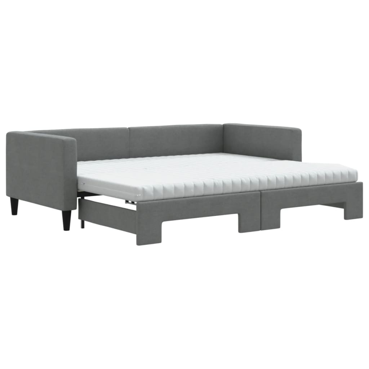 This 2-in-1 daybed with trundle, serving as both a sofa and bed, makes a practical and eye-catching addition to your living room or bedroom. Versatile daybed: The sofa bed functions as a sofa during the day and easily converts into a double bed at night by pulling out the trundle, providing a convenient solution for hosting guests and maximising space.Comfortable foam mattress: This sleeper bed is supplied with two foam mattresses for maximum support and optimum comfort.Durable fabric and solid construction: This day bed sofa has a sturdy frame made of wood and metal and is upholstered in durable and comfortable fabric.Modern design: The couch bed has a modern design that features clean lines, a minimalistic look, as well as natural light, and will add a modern style to your interior!