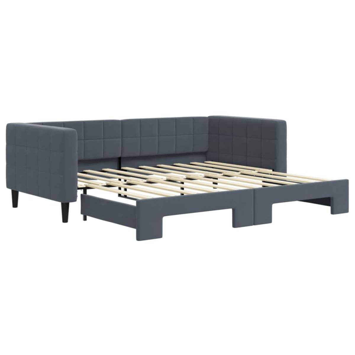 This 2-in-1 daybed with trundle, serving as both a sofa and bed, makes a practical and eye-catching addition to your living room or bedroom. Versatile daybed: The sofa bed functions as a sofa during the day and easily converts into a double bed at night by pulling out the trundle, providing a convenient solution for hosting guests and maximising space.Soft velvet: The guest bed is made of velvet. It is a soft and comfortable fabric that feels nice against the skin.Solid construction: The wooden and metal frame of the sleeper bed ensures sturdiness and stability. Good to know:Mattresses are not included with this daybed. We do offer a various selection of mattresses. You can check our shop for matching mattresses.