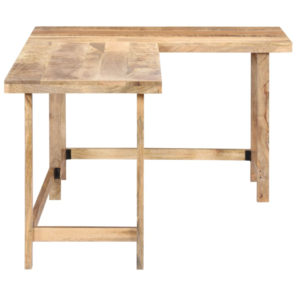 This wooden desk oozes a rustic charm and will be the focal point of your interior. This writing table is made of solid mango wood, a hardwood with dense grains. Rough mango wood not only boasts the strength to bear the weight, but also stands the wear and tear of time. The exquisite craftsmanship and the graceful wood grains make every piece of furniture distinctive and slightly different from the next. Additionally, this study desk is distinguished by L design and it can be fitted on either right or left side. Important note: The grains vary from piece to piece, making each piece unique. The delivery is random, ensuring the exclusivity and individuality of your product.
