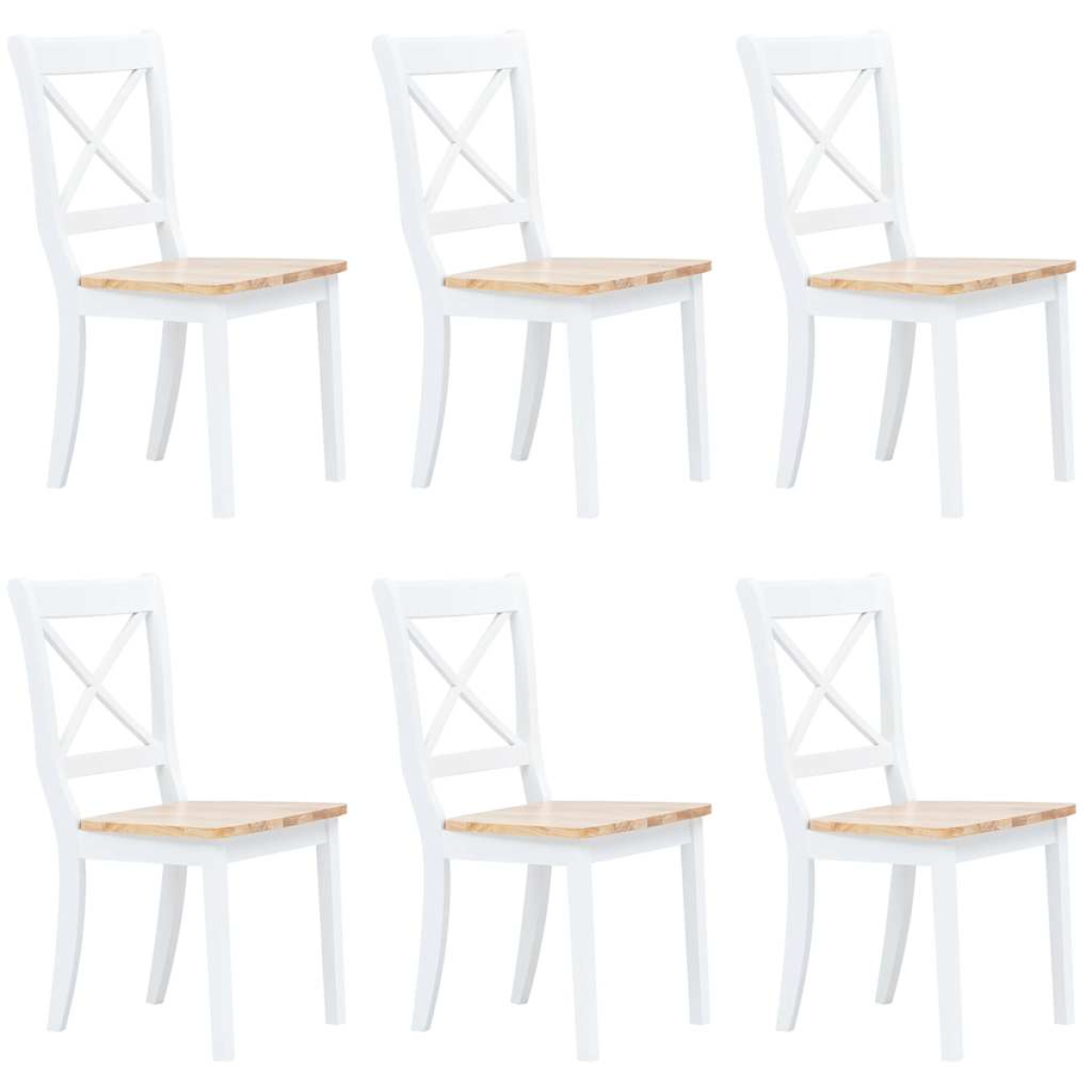 vidaXL Dining Chairs 6 pcs White and Light Wood Solid Rubber Wood