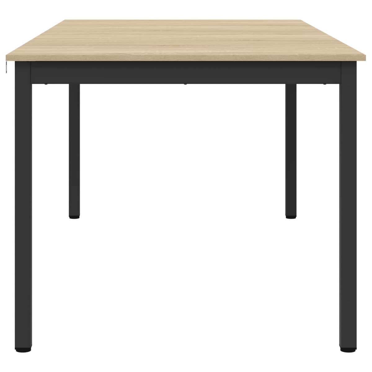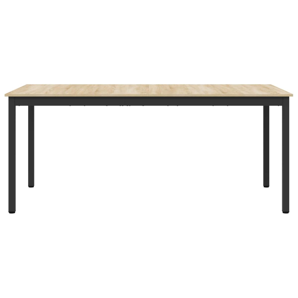 This rectangular dining table seamlessly combines modern aesthetics with functional design, making it a stunning centerpiece for any dining room or kitchen. Adorned with clean lines and a minimalist structure, it serves as an ideal choice for contemporary homes looking to enhance their interior with a touch of elegance. Its versatile form not only complements a variety of decor styles but also provides a practical surface for hosting dinners, gatherings, or everyday meals. Engineered Wood Surface The table features a sturdy engineered wood surface that provides excellent durability and resistance to everyday wear. Easy to clean, this material also offers a refined finish that enhances the overall appearance of your dining space. Its smooth texture makes it ideal for both social gatherings and quiet family dinners. Black Metal Frame The sleek black metal frame provides robust support to the table, ensuring stability during use. Its contemporary appearance blends seamlessly with modern decor, making it a perfect fit for both dining rooms and open living spaces. Square Metal Legs These square legs not only enhance the table's modern design but also offer a sturdy foundation. Designed for lasting performance, the legs ensure reliable support, maintaining the table's structural integrity over time. Ideal for those looking for a stable and secure dining experience. Simple Functionality Crafted for straightforward use, the table exemplifies practicality with its easy-to-clean surface. Just a simple wipe with a damp cloth keeps it looking pristine, making it an excellent choice for busy households or those who entertain frequently. Assembly Requirement Though assembly is required using a screwdriver, the process is straightforward and involves two people, allowing you to set up your dining area quickly and efficiently. This consideration makes it accessible and ideal for households looking to quickly enhance their dining space.