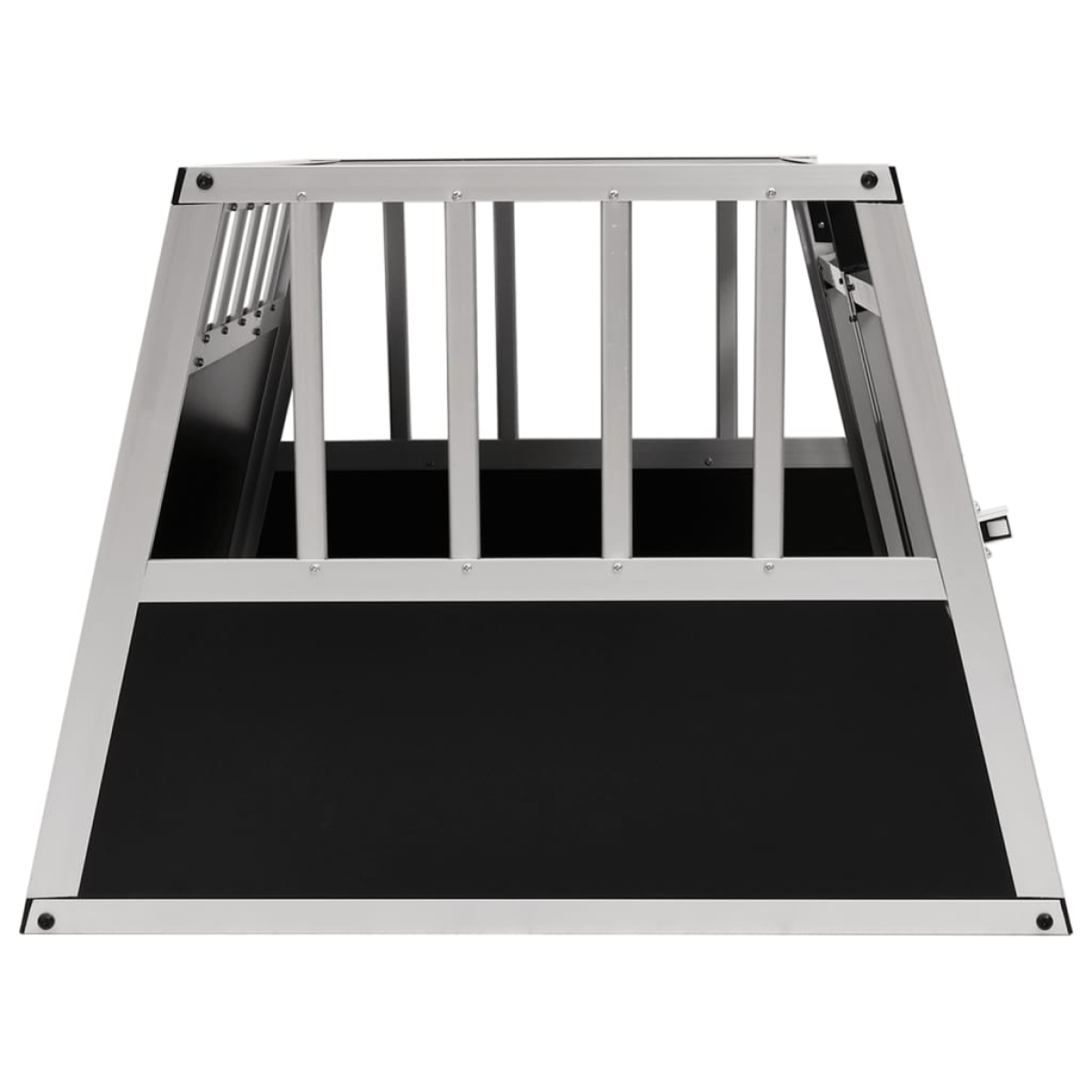 This dog cage will contribute to a safe and comfortable journey for both you and your dog. It is suitable to be used in the trunk of your car. This dog house is made of aluminium and MDF, which is durable and easy to maintain. Our cage is designed with plastic corner connections to avoid any injury to your feline friend. The innovative construction of the box ensures your dog to keep an eye on its surroundings and get enough fresh air. The double-door design makes it very easy to get in and out. Our cage is lightweight and easy to transport in your car. This item is easy to assemble. Warning: We advise measuring your car carefully to avoid a situation where this dog cage does not fit your car.