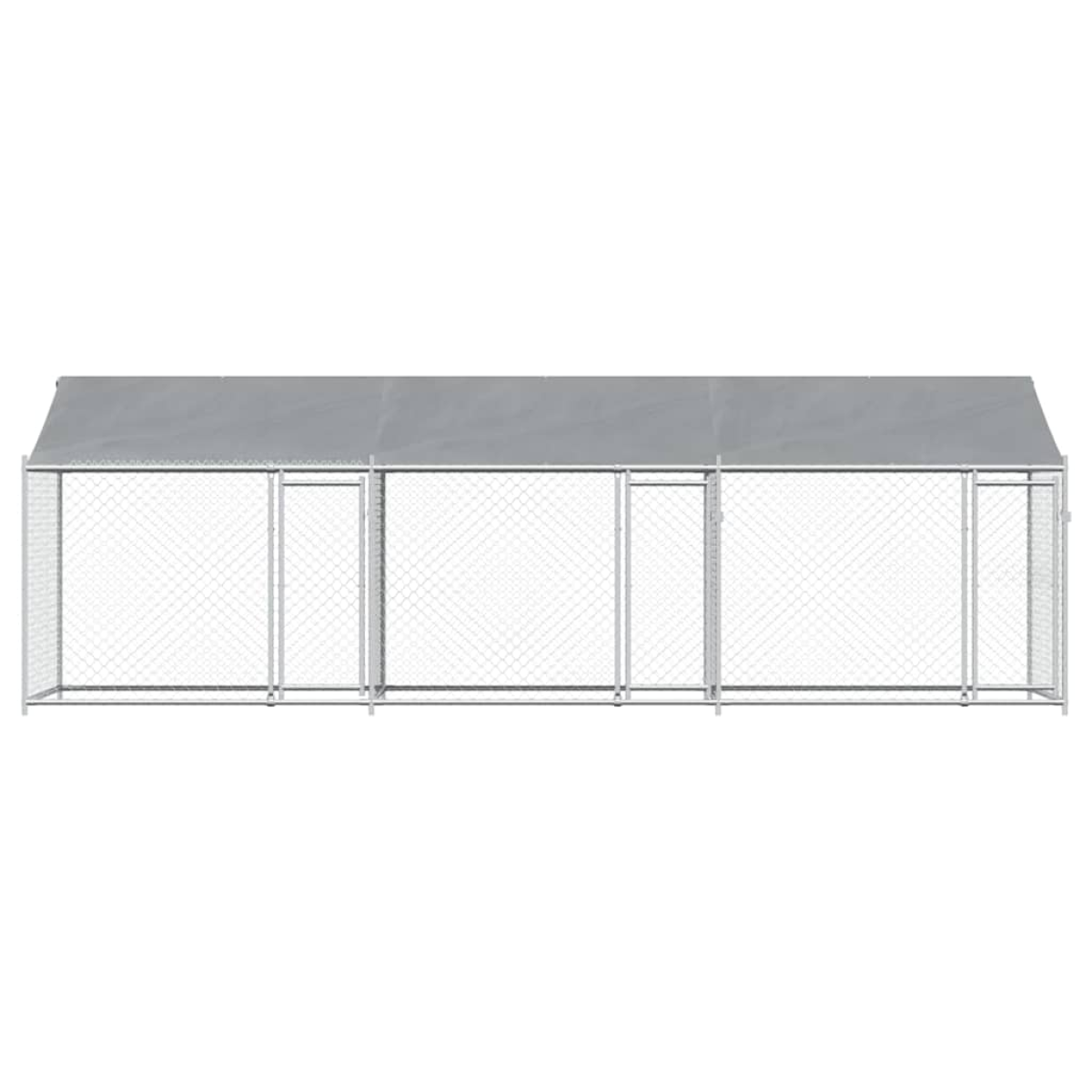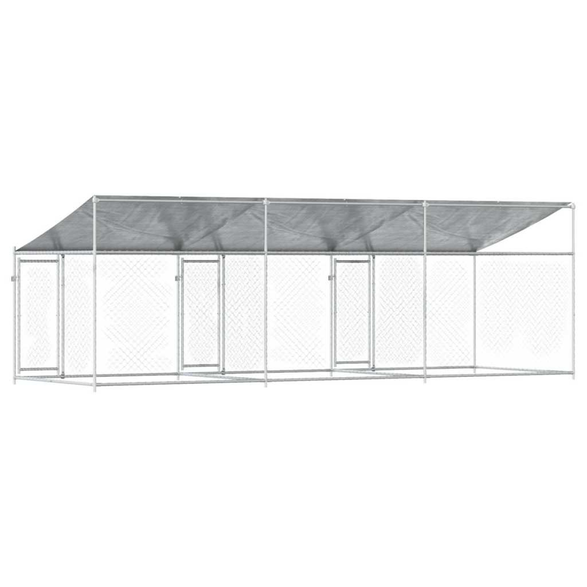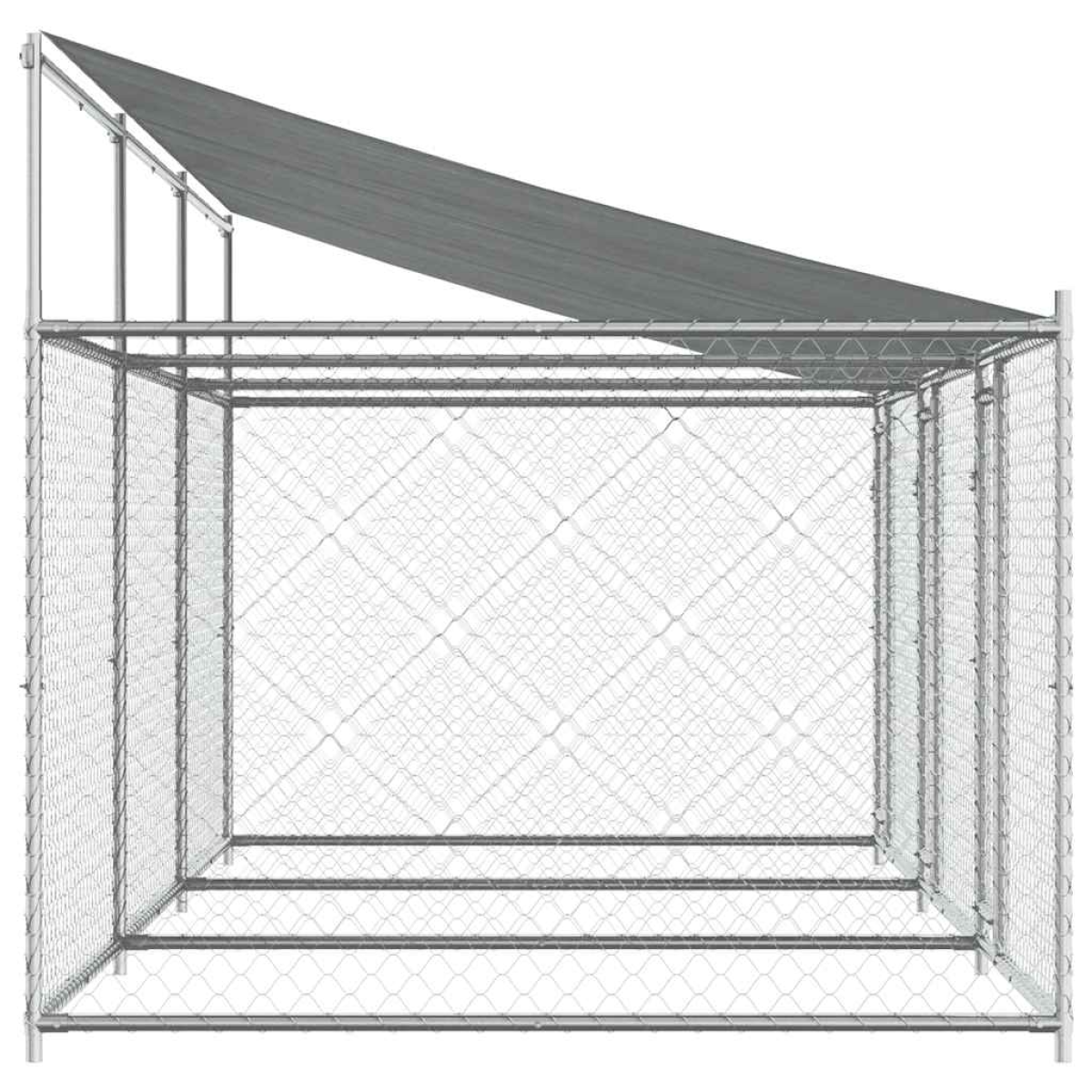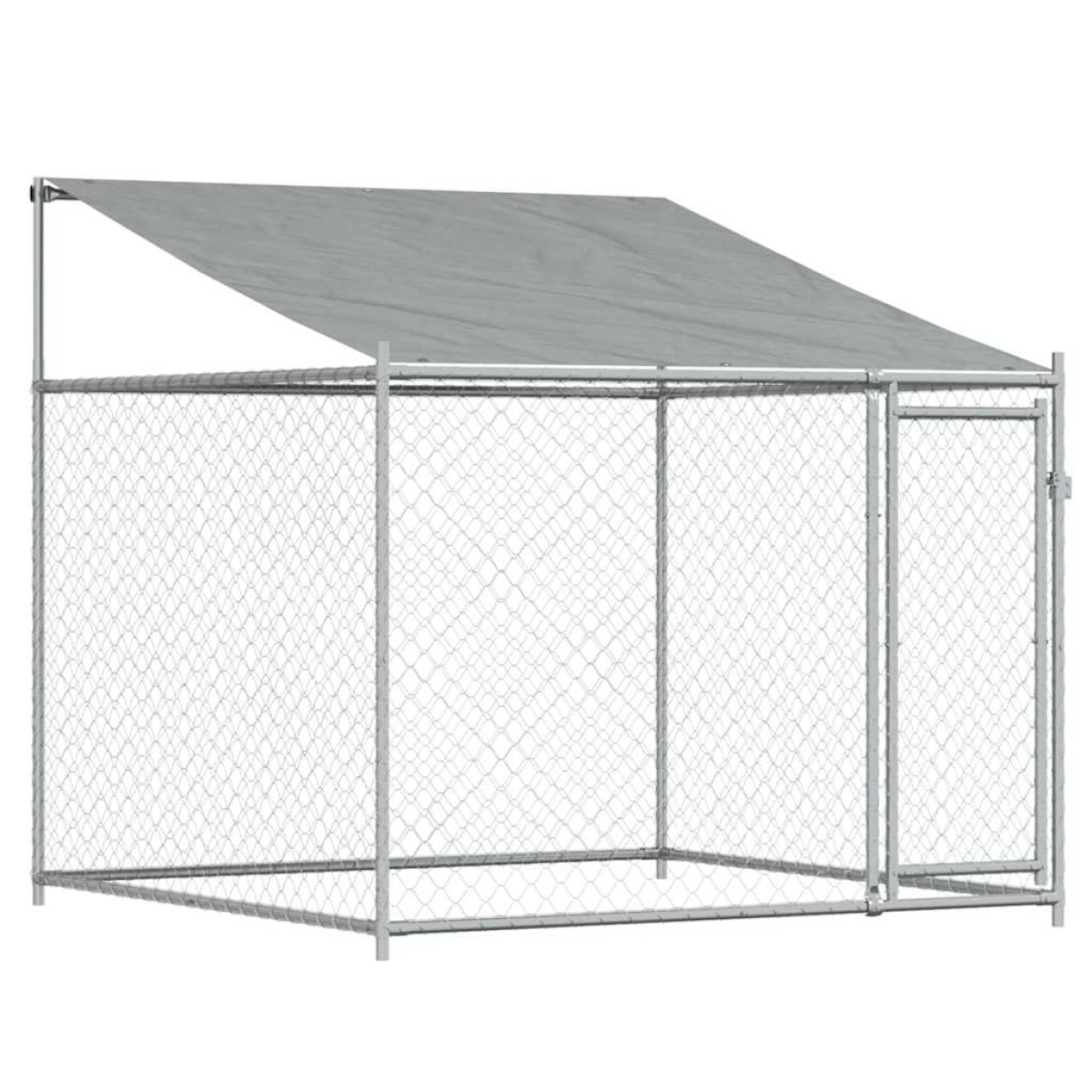 Keep your furry friends in a safe and comfortable space with this dog cage! Versatile use: The versatile dog kennel features multiple uses: playing, exercising, training, or simply keeping your dog safe. It will be the perfect play paradise for your animals!Durable construction: Thanks to the sturdy and heavy-duty galvanised steel construction, the dog pen is durable and built to last.Mesh design: The mesh design of the outdoor dog kennel helps prevent mischief and unexpected accidents while enabling ventilation.Practical roof: The roof of the metal dog crate is made of water-resistant fabric to provide your dog with shade and protection from light rain.Convenient access: The outside dog cage features lockable doors, making it easy to get in and out.Good to know:To prevent damage from heavy snow buildup, we recommend clearing the roof regularly during winter.