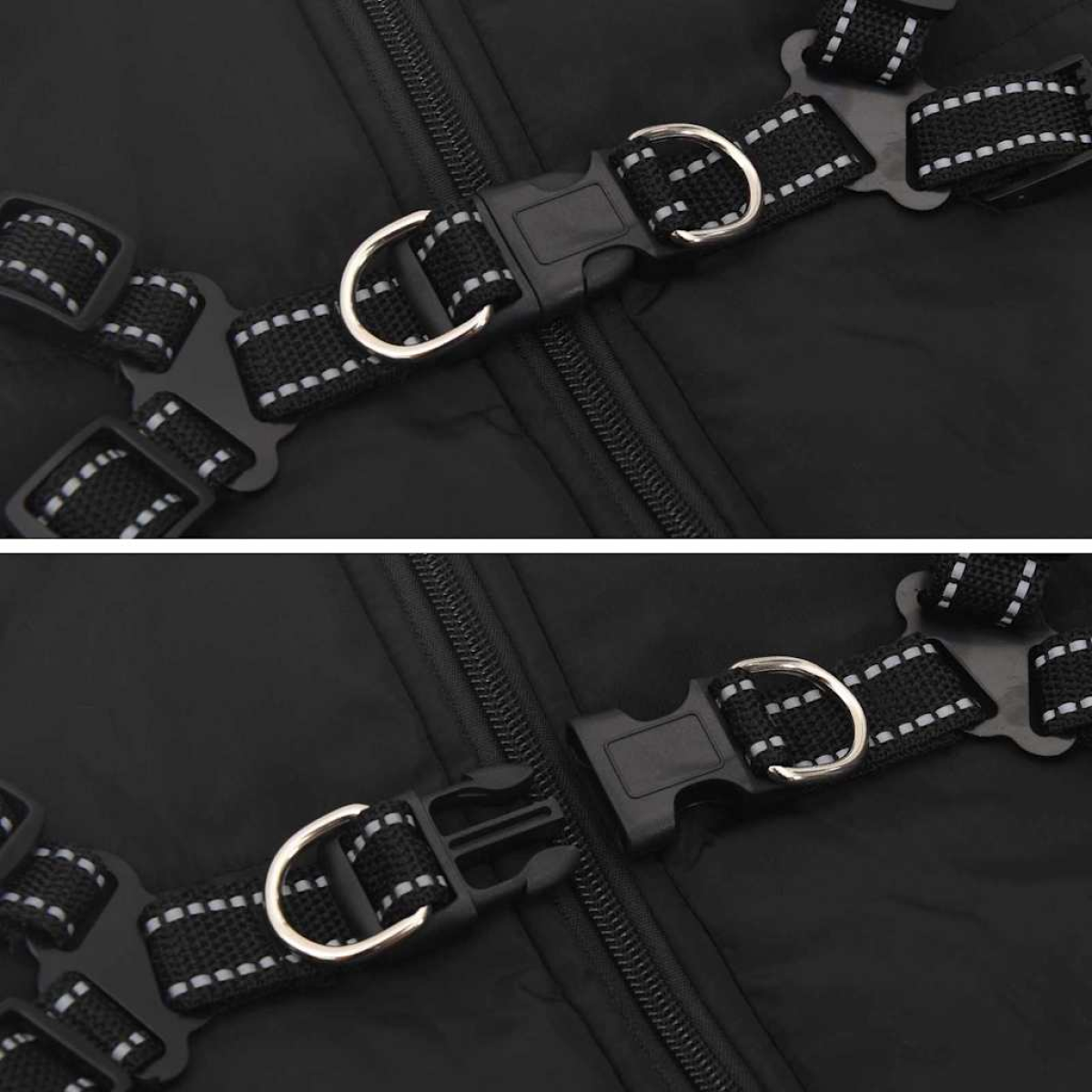 This dog coat, suitable for outdoor winter use, combines practicality and comfort. Designed for pets that love winter adventures, it provides necessary protection through its windproof and water-resistant material. With a sophisticated look, this accessory is perfect for dogs and their owners who prioritize both style and functionality while braving the cold. Windproof &Water Resistant: Crafted from fleece and polyester, this coat is specifically designed to withstand harsh winter elements. Its material combination ensures your pet stays dry and cozy, protecting them from cold winds and rain during outdoor activities. Length &Width Adjustability: Tailored to fit various dog sizes, this coat features adjustable components for optimal fit. The length-and-width adjustable straps provide a snug and secure feel, allowing freedom of movement without compromising on warmth. Reflective Safety Stripes: Boasting reflective stripes, this dog coat enhances visibility, ensuring your pet is more easily seen during evening walks or low-light conditions. This feature prioritizes safety while maintaining the coat’s stylish appearance. Integrated Harness: With a smooth back zipper and double D-rings, this coat includes a practical built-in harness system. It enables secure attachments, reducing the need for additional collars or harnesses, streamlining your outdoor preparations. Cozy Fleece Lining: The interior fleece lining offers additional warmth and comfort, creating a plush space for your dog, which they will love to wear during colder months. This cozy design ensures prolonged use without discomfort.