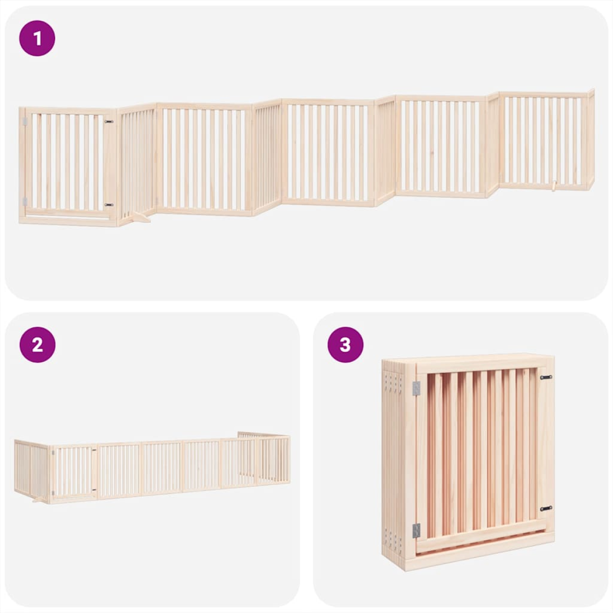 The dog gate puts your pet in a fixed activity area, which can keep your pet safe and prevent you from being disturbed. Durable material: The dog gate is made of poplar wood with water-base paint, making it durable, long-lasting, and easy to clean.Easy to use: The dog gate does not require installation or drilling that doesn't damage your home. This dog gate can be totally foldable when without feet, making it easy to carry and store in the closet or somewhere else.Practical design: The dog gate features two sturdy feet, providing stability and allowing for easy adjustments. Additionally, it includes a door panel and is equipped with locks, providing enhanced security and convenience for both you and your pets.Multiple applications: This dog gate can effectively prevent your pets from jumping over and getting through. Therefore, it is perfect for keeping your pets safe in the living room, kitchen, stairs, and doorway.