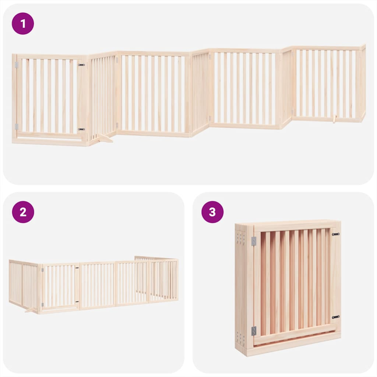 The dog gate puts your pet in a fixed activity area, which can keep your pet safe and prevent you from being disturbed. Durable material: The dog gate is made of poplar wood with water-base paint, making it durable, long-lasting, and easy to clean.Easy to use: The dog gate does not require installation or drilling that doesn't damage your home. This dog gate can be totally foldable when without feet, making it easy to carry and store in the closet or somewhere else.Practical design: The dog gate features two sturdy feet, providing stability and allowing for easy adjustments. Additionally, it includes a door panel and is equipped with locks, providing enhanced security and convenience for both you and your pets.Multiple applications: This dog gate can effectively prevent your pets from jumping over and getting through. Therefore, it is perfect for keeping your pets safe in the living room, kitchen, stairs, and doorway.