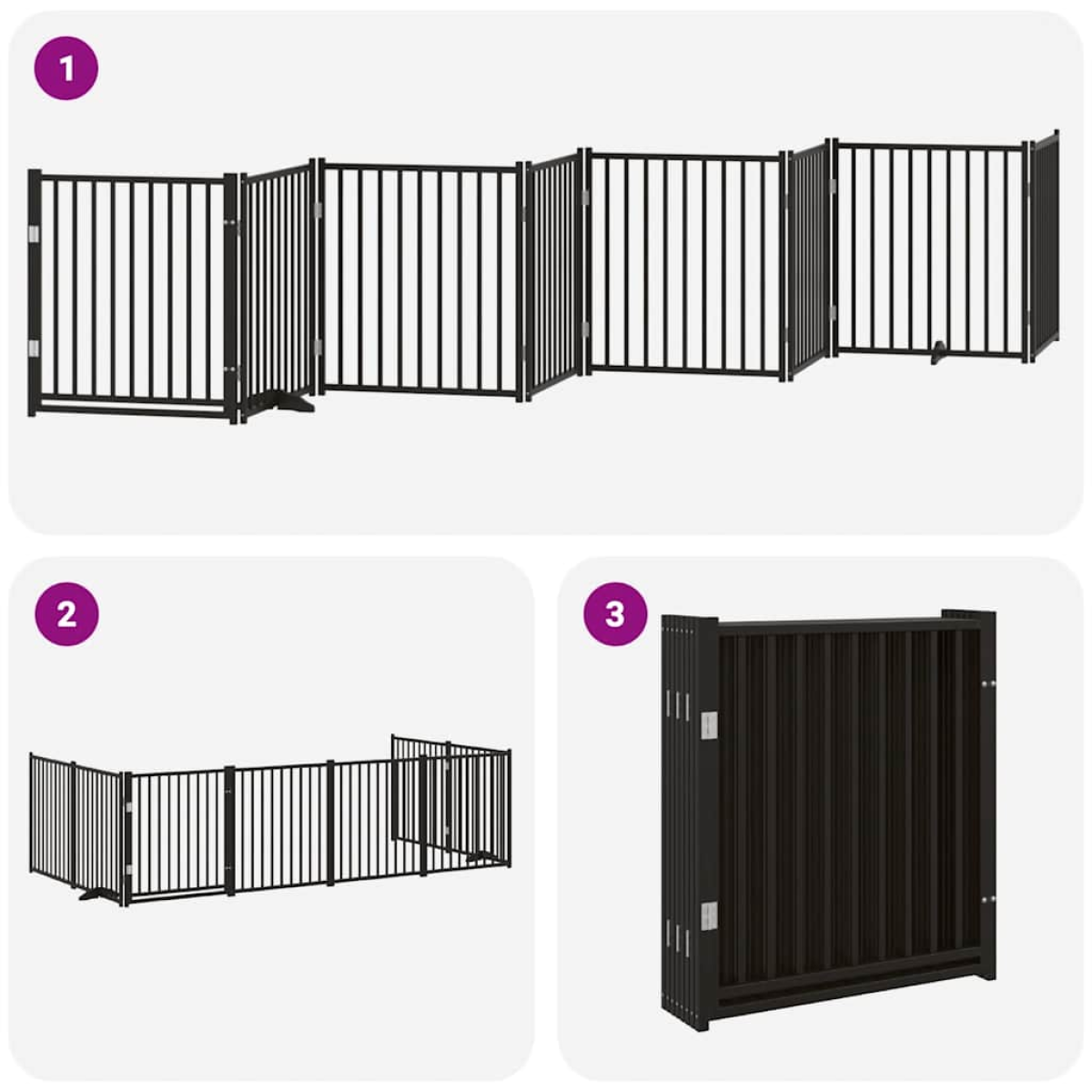 The dog gate puts your pet in a fixed activity area, which can keep your pet safe and prevent you from being disturbed. Durable material: The dog gate is made of poplar wood with water-base paint, making it durable, long-lasting, and easy to clean. Easy to use: The dog gate does not require installation or drilling that doesn't damage your home. This dog gate can be totally foldable when without feet, making it easy to carry and store in the closet or somewhere else. Practical design: The dog gate features two sturdy feet, providing stability and allowing for easy adjustments. Additionally, it includes a door panel and is equipped with locks, providing enhanced security and convenience for both you and your pets. Multiple applications: This dog gate can effectively prevent your pets from jumping over and getting through. Therefore, it is perfect for keeping your pets safe in the living room, kitchen, stairs, and doorway.
