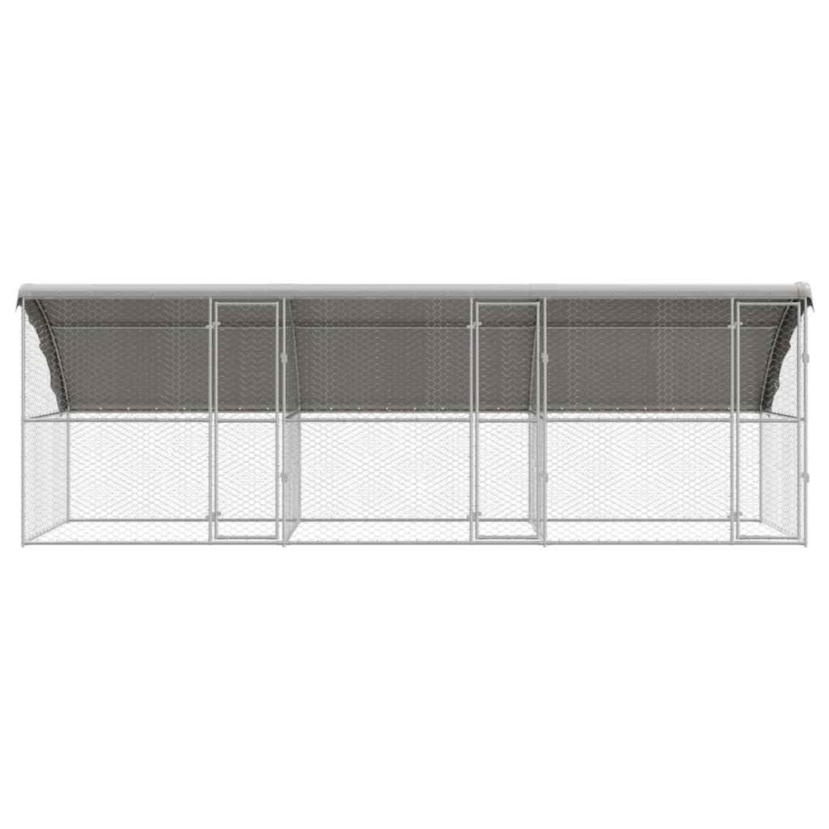 This dog kennel is a perfect blend of minimalist modern style and functionality, tailored specifically for animal and pet supply enthusiasts. Designed to be a reliable housing solution, it offers a sleek aesthetic with the strength of steel, making it suitable for robust outdoor environments. This kennel serves as a secure space for dogs, offering protection and comfort concurrently. Its understated elegance integrates seamlessly into various outdoor landscapes while providing a robust shelter. Steel Construction Crafted from high-quality steel, this dog kennel offers robust protection against the elements, ensuring longevity and ease of use. The solid steel structure withstands wear and tear from animal activity and factors, making it a wise choice for outdoor settings. Durable Design Engineered specifically for strength, the kennel easily handles the energetic movements of strong pets. This attention to sturdy construction ensures that the product remains intact and functional over long periods, reducing the need for frequent replacements. Minimalist Modern Style The kennel’s sleek, silver finish complements a variety of outdoor settings. Its minimalist design doesn't compromise on functionality, making it a stylish addition that enhances your garden or backyard while housing pets comfortably. Easy Maintenance Keeping the kennel clean is straightforward with its easy-care instructions. Simply wipe down with a damp cloth to maintain its pristine appearance. This ease of maintenance ensures that the kennel remains an attractive and sanitary space for your pets. Outdoor Use Perfect for seasonal use during autumn and winter, this dog kennel was designed to endure outdoor conditions, providing your pet with a safe haven regardless of the weather. Its resilient build offers a protected environment during harsh conditions, making it an excellent outdoor housing solution.