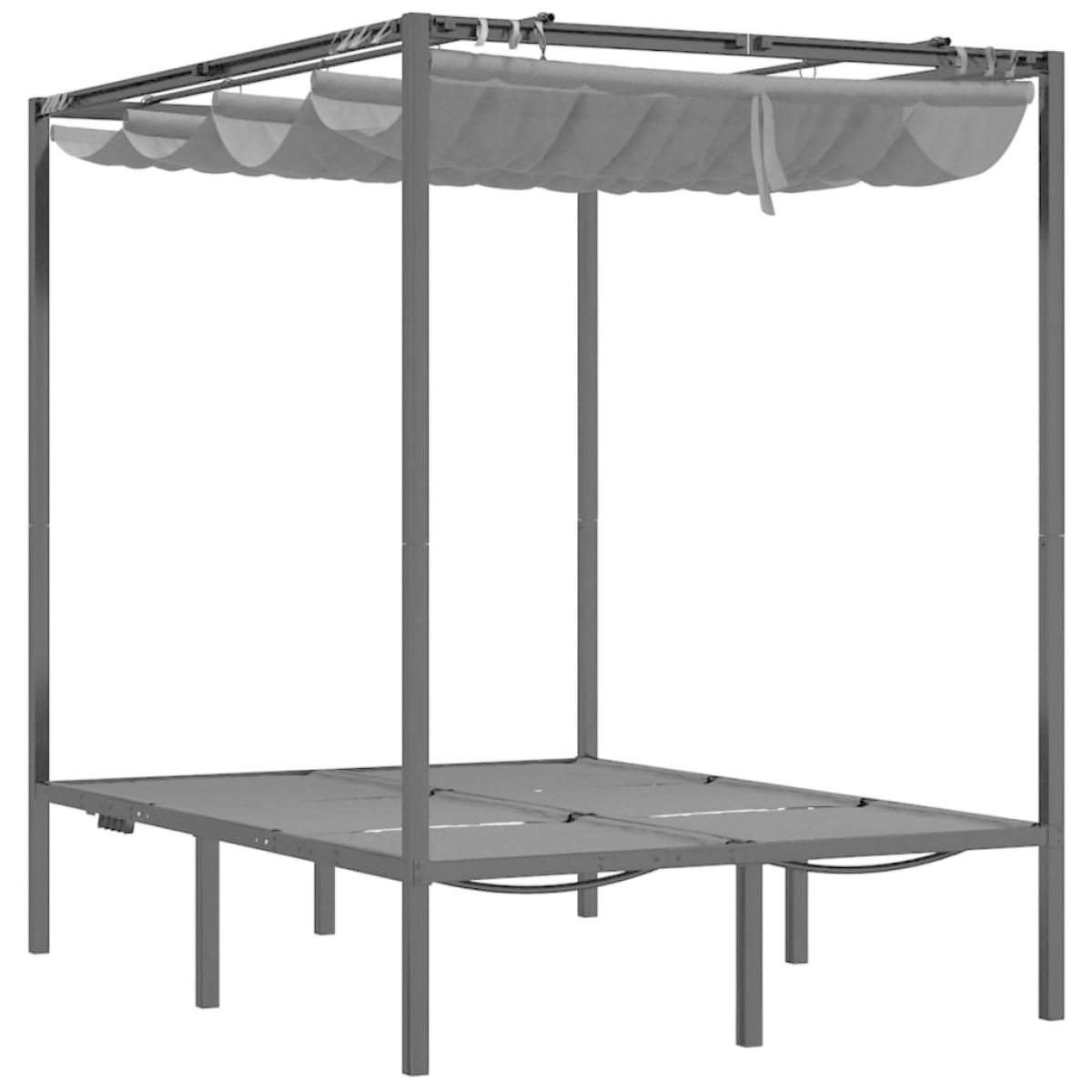 This double sun lounger is a perfect combination of style and functionality and is ideal for relaxing near the swimming pool, on your patio, or in the garden. Adjustable backrest: This sun bed can be adjusted for added seating and lying comfort.Practical canopy: The canopy and curtains add to the luxurious look and are perfect for keeping out insects and providing shade and privacy. The curtains can be removed and stored so you can enjoy the sun freely.Stable frame: The lounge bed is constructed with a powder-coated steel frame, which ensures sturdiness and stability. Good to know:To make assembly as easy as possible, each product is delivered with a manual. Note:To make sure your outdoor furniture stays beautiful, we recommend protecting it with a waterproof cover.This product is not suitable for use as a carport.