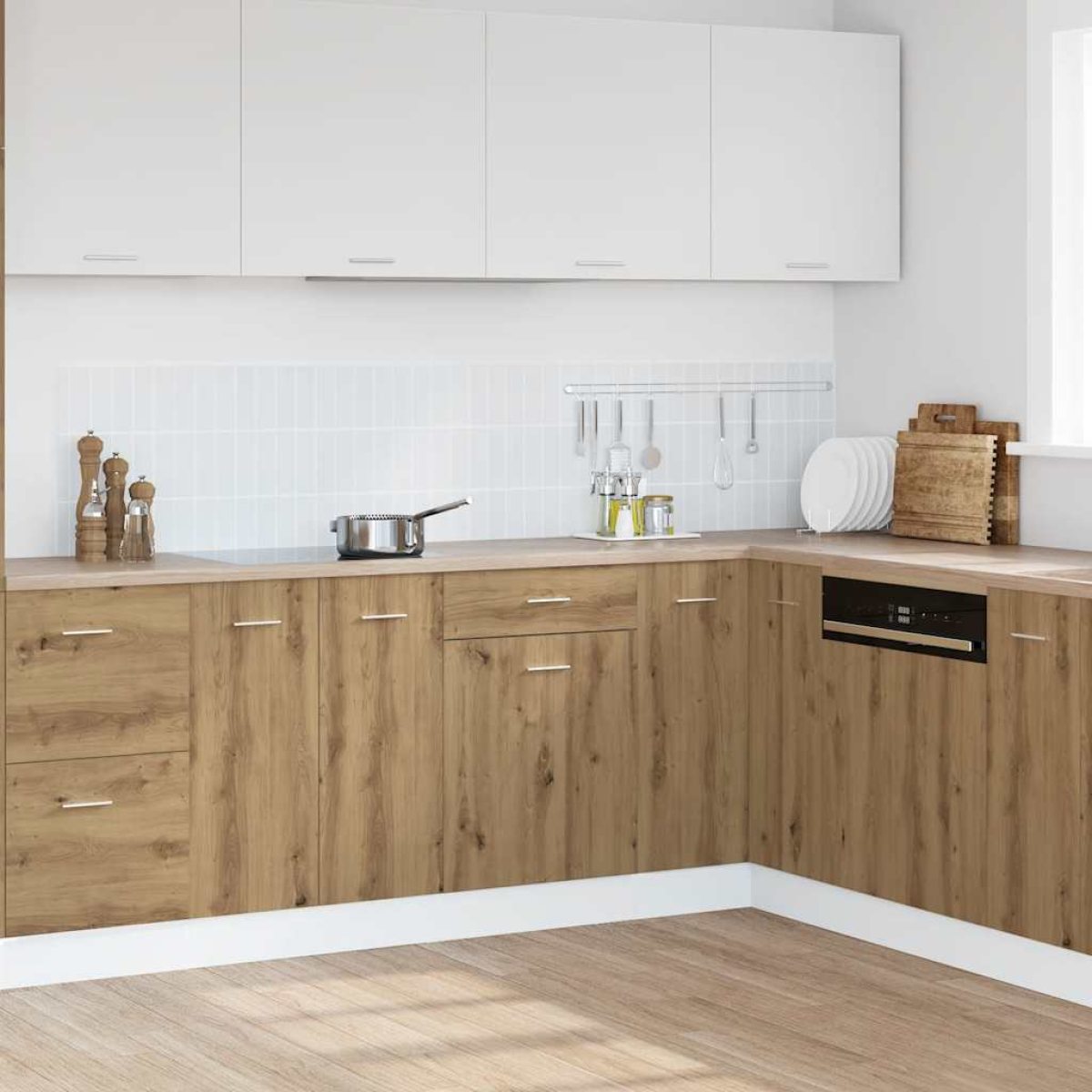 This drawer bottom cabinet optimises your kitchen space, providing ample storage space for your personal belongings! Durable material: The engineered wood is of exceptional quality with smooth surface and also features strength, stability and resistance to moisture. Made of engineered wood, the kitchen cabinet is easy to clean.Ample storage space: The cabinet has 1 drawer and 2 compartments, offering sufficient space to store bowls, plates, pots, and other kitchen appliances.Practical door: Keep your space clutter-free by hiding small essentials behind the door of the kitchen unit. Warning:To prevent it from tipping over, this product must be used with the provided wall attachment device.