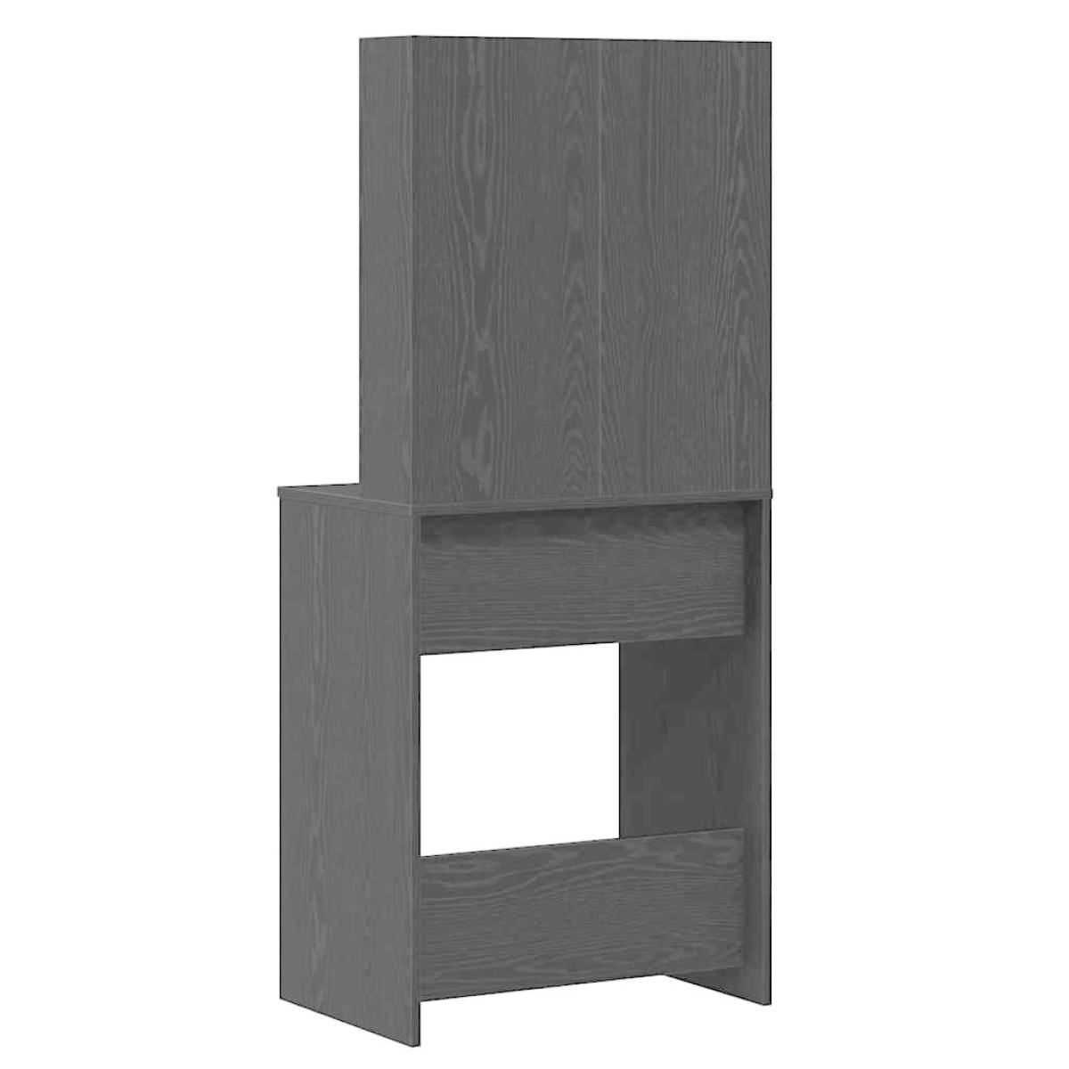 This sophisticated vanity table showcases modern design with its minimalistic and clean lines, providing a functional yet stylish addition to any bedroom. Ideal for a wide range of users, this rectangular dressing table features a sleek appearance, making it a perfect choice for those who appreciate contemporary aesthetics. The built-in lighting, ample storage, and practical design contribute to a versatile piece that suits both personal grooming and decorative needs in the home. Materials: Constructed from engineered wood, this vanity table stands out with its robust frame. This choice of material offers a smooth surface finish and elegant appearance, combined with acrylic accents for a modern touch. Its engineered wood composition ensures stability and longevity, making it a reliable addition to any dressing room setup. Included Components: Features a variety of components designed for convenience and style. The plane mirror is perfect for daily grooming rituals, while the shelves made from board materials offer ample space for all essentials. Equipped with sturdy hairpin legs, this table combines function and aesthetics seamlessly. Features /Function /Design: Experience practicality with ample storage space and durable engineered wood construction. The modern design focuses on simplicity and functionality, with LED strip lights for enhanced convenience. The hairpin legs add a touch of elegance, reflecting vintage mid-century influences while maintaining a stable structure. Recommended Uses: Perfect for any bedroom needing a stylish touch, this vanity table blends into both personal grooming and decorative setups. The versatile design makes it suitable for indoor use, offering a dedicated space for makeup, accessories, or even a study spot. Care &Maintenance: To keep the table in pristine condition, avoid using harsh chemicals or abrasives which may damage the surface. Regularly dust off with a soft cloth to maintain its sleek appearance and ensure electrical components such as LED lights continue functioning optimally.