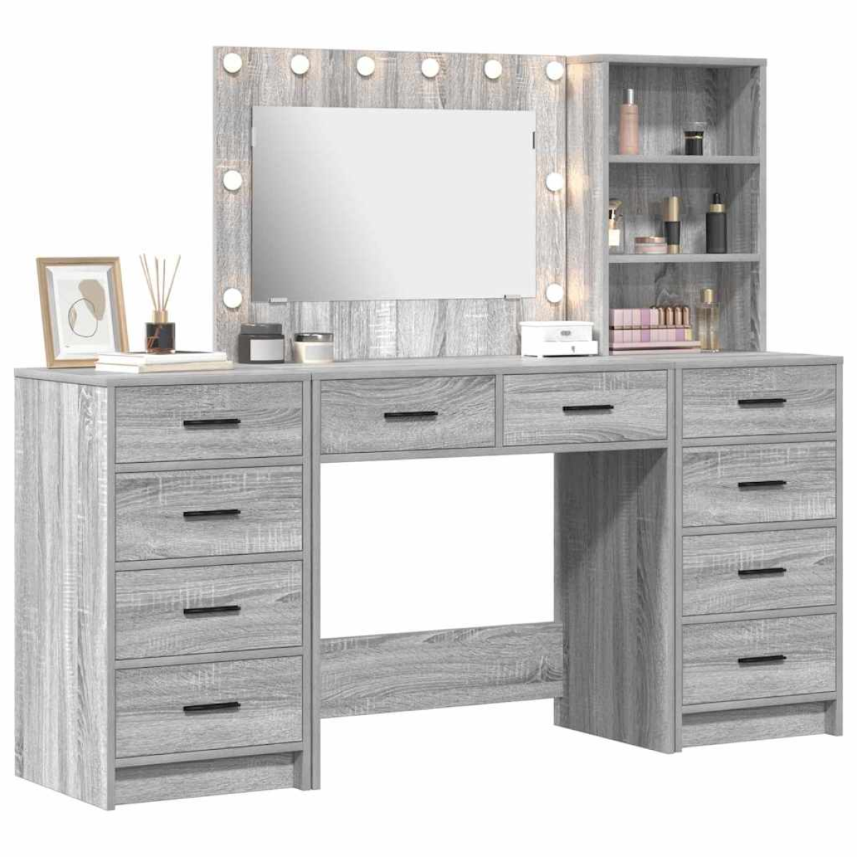 Check out the Modern Dressing Table - it’s not just a pretty face, it’s also super handy. With its straight lines and minimal vibe, it slots into modern spaces without a hitch, giving you a stylish centrepiece for your morning or evening routine. The top-notch craftsmanship makes it perfect for contemporary homes, jazzing up your decor and serving as an essential spot for your personal care. Engineered Wood: Made from quality engineered wood, this dressing table shows off a mix of style and strength. Its compact build doesn't skimp on quality, standing up to everyday knocks, making it great for regular use. The smooth finish also gives it a polished look that fits right in with modern decor and is a breeze to clean. LED Strip Lights: Decked out with flexible LED strip lights, this table makes your makeup or dressing routine so much easier by ensuring you can see what you’re doing, day or night. These lights let you adjust for any lighting situation, so you're sorted no matter the time. Board Shelves: With several board shelves, this dressing table has loads of space to keep everything neat. From all your beauty stuff to personal bits and bobs, each shelf can help keep things organised. Drawer Component: The big drawers give you even more storage room for larger items. They slide open smoothly, so accessing your things is no hassle, keeping the table looking tidy. Modern Aesthetics: The sharp lines and simple elegance of this dressing table make it perfect for modern homes. Its design focuses on practicality without forgetting style.