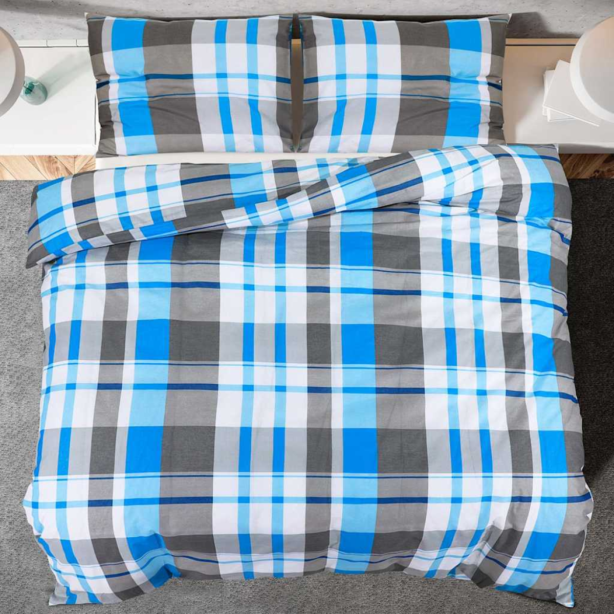 vidaXL Duvet Cover Set Blue and Grey 260x240 cm Cotton
