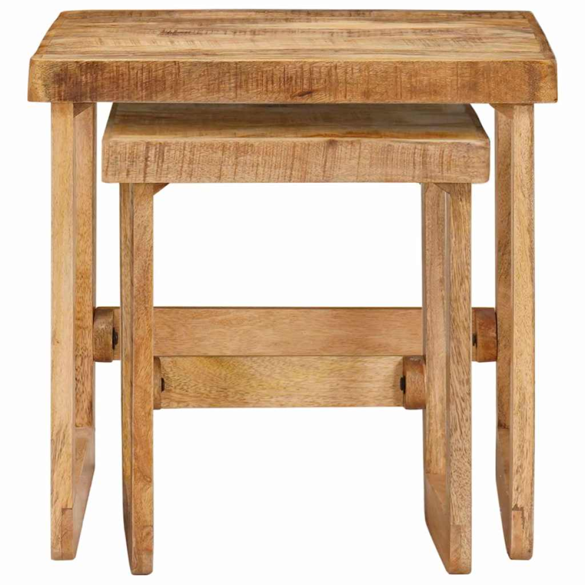 This lovely set of rustic end tables hits the sweet spot between beauty and practicality. The authentic, rugged vibe fits right in with any living room decor. Thanks to the handmade craftsmanship, each table is unique, bringing warmth and character to your space. Being compact, they're perfect for snuggling up next to sofas or chairs and easily holding lamps or decorative bits. With straightforward assembly using just a screwdriver, this two-piece set is a brilliant mix of style and convenience, ready to liven up modern settings with its unique, weathered look. Handmade Craftsmanship: Each table's got a unique touch, showcasing stunning, hand-detailed work that adds warmth and character to your home. Two Distinct Sizes: The set includes tables sized 46x46x45 cm and 35x35x40 cm, giving you loads of flexibility for arranging them just how you like. Stackability Advantage: These tables stack up nicely, making them brilliant for small spaces and clever design. Rustic Appeal: With their rough texture, these end tables bring a rugged beauty that's both chic and earthy, ensuring they fit in anywhere. Care Instructions: Just a soft, dry cloth will keep them looking brand new. Avoid harsh chemicals to make sure they stay beautiful and tough. A little care goes a long way, and they'll stay as lovely and functional as they were on day one.