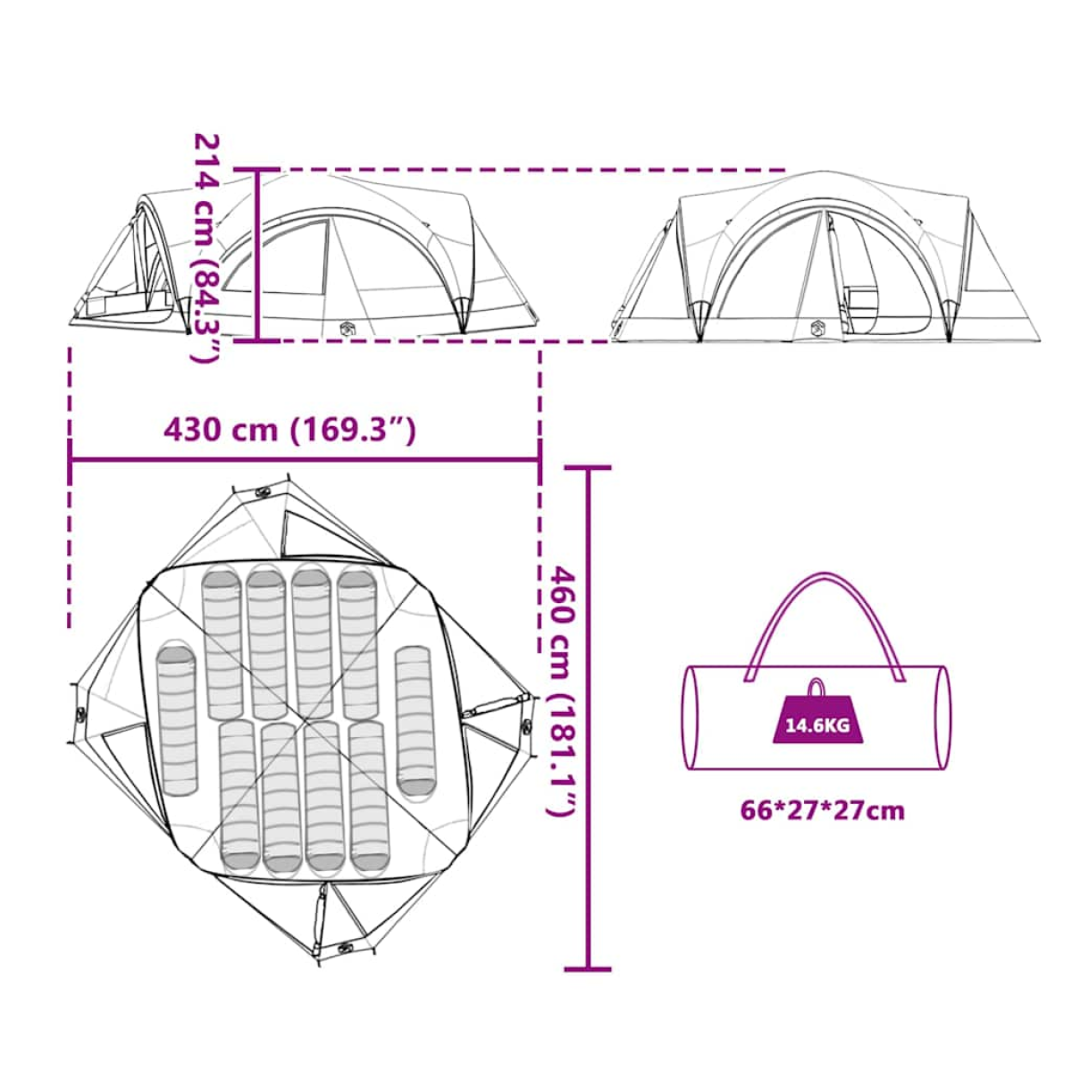 This Family Camping Tent offers an expansive shelter that combines both functionality and style for outdoor enthusiasts. With its modern design characterized by clean lines and minimal ornamentation, this tent seamlessly fits into any camping environment. It provides ample space, making it ideal for families or groups venturing into nature. Its striking silhouette and practicality promise sheltered nights under the stars, fostering memories of adventure and connection with the great outdoors. 185T Polyester with PU Coating Constructed from 185T polyester equipped with a protective PU coating, this tent ensures durability and resistance to varying weather conditions. The quality of taffeta fabric offers a reliable barrier against unforeseen summer storms, protecting campers from rain and winds while maintaining a breathable environment inside. These durable materials enhance its life span, contributing to countless seasonal adventures. Complete Camping Setup Your kit includes a tent canopy, a removable rainfly, a robust set of poles, a convenient carry bag, guy lines for added stability, and ground stakes for anchoring. Every component works together seamlessly to deliver a stress-free camping experience, ensuring a quick setup and dismantling process. Functional Features It boasts practical features such as a roomy interior storage pocket and a built-in light hook that helps organize and brighten your camping activities. The ventilation windows allow airflow management, essential for maintaining comfortable interior conditions, while the convenient E-Port lets you connect power to devices effortlessly. Versatile for Outdoor Use Assembled in gardens, terraces, or campsites, its portability and easy transportation qualities make it adaptable for a variety of outdoor environments. The use of UV-resistant and weatherproof materials guarantees performance, safeguarding occupants whether the skies turn clear or cloudy. Simple Cleaning Instructions To preserve its appearance and extend its durability, wipe down the tent with a damp cloth after outdoor use. Ensure all water and dirt are removed, preventing material degradation. Its assembly requires two people, assisted by included anchors.
