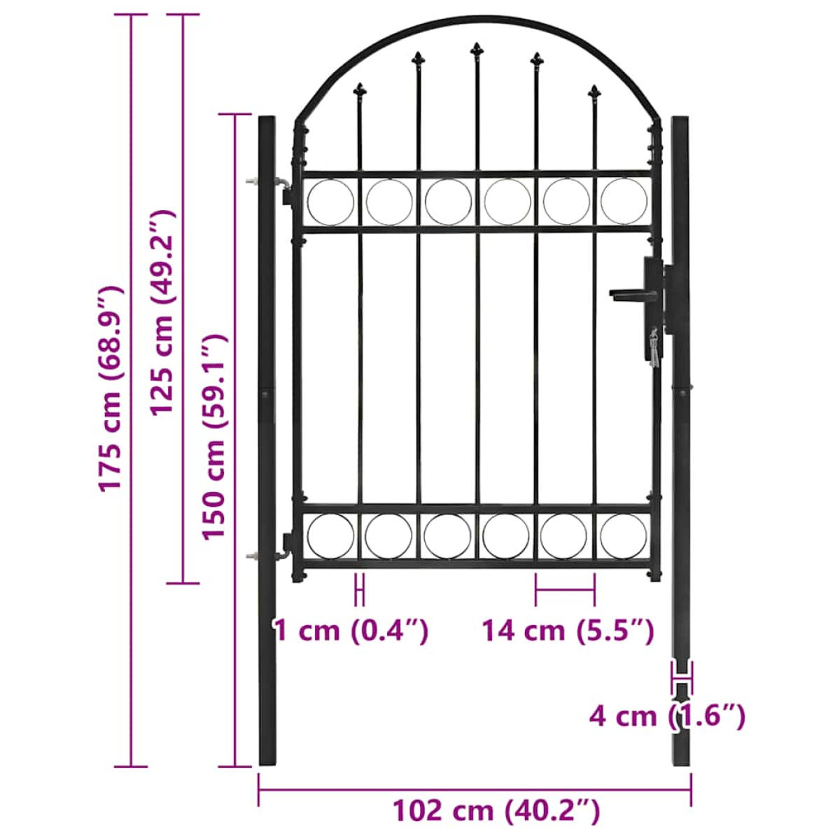 vidaXL Fence Gate with Arched Top Steel 102x125 cm Black
