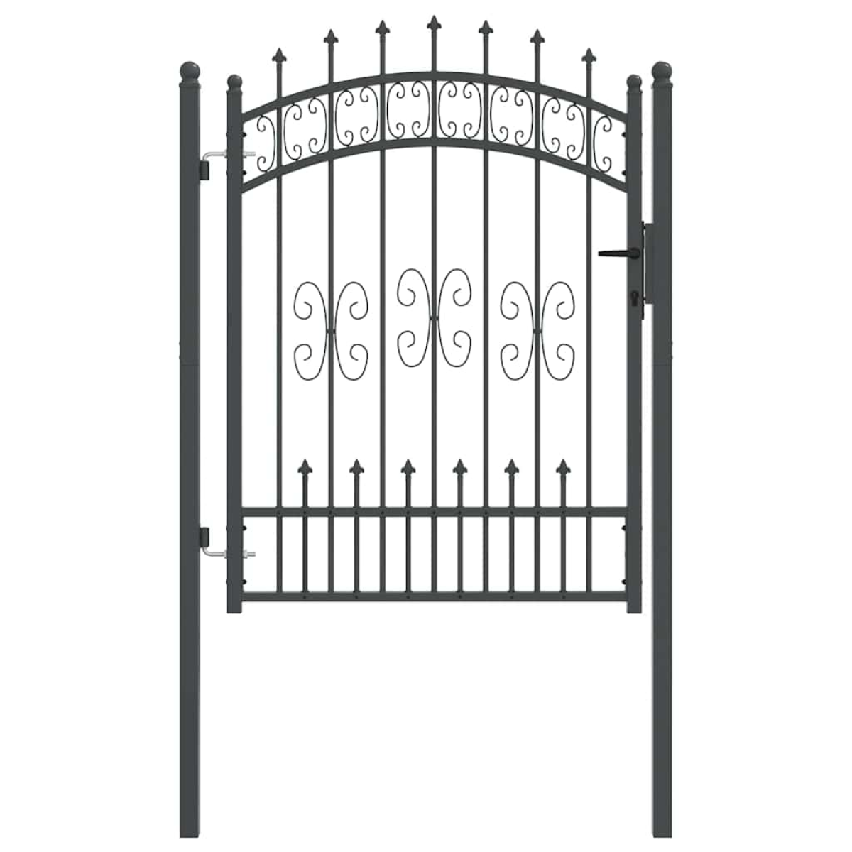vidaXL Fence Gate with Spear Top with Lock Grey 103 x 175 cm Steel