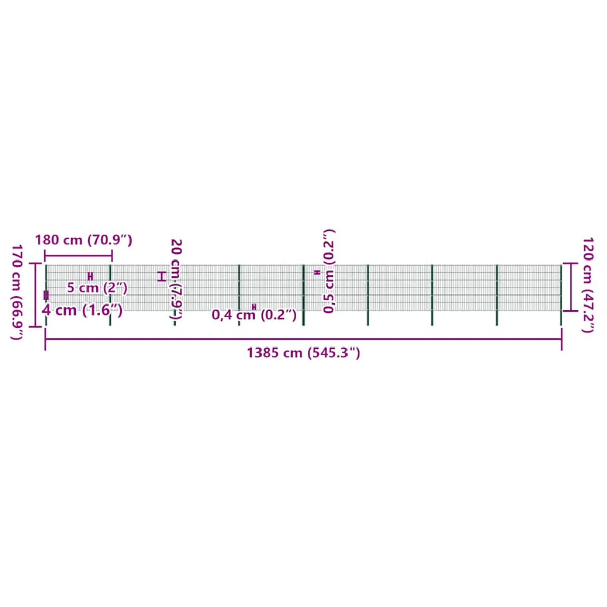 Featuring a simple yet practical design, this set of garden fence panels with posts will perfectly suit any garden. Made of weather-proof and corrosion-resistant powder-coated iron, this set of screen fencing is exceedingly sturdy and durable. The fencing set is easy to set up and will form a formidable barrier to keep unwanted guests away from your garden or patio. Delivery includes 24 x 2 D fence panels and 9 posts.