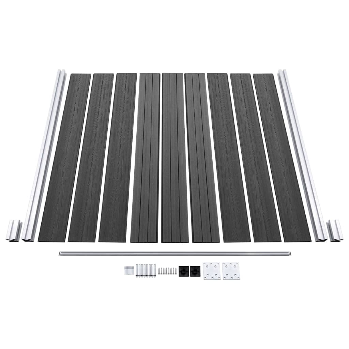 - Material: WPC (wood-plastic composite), aluminium, steel