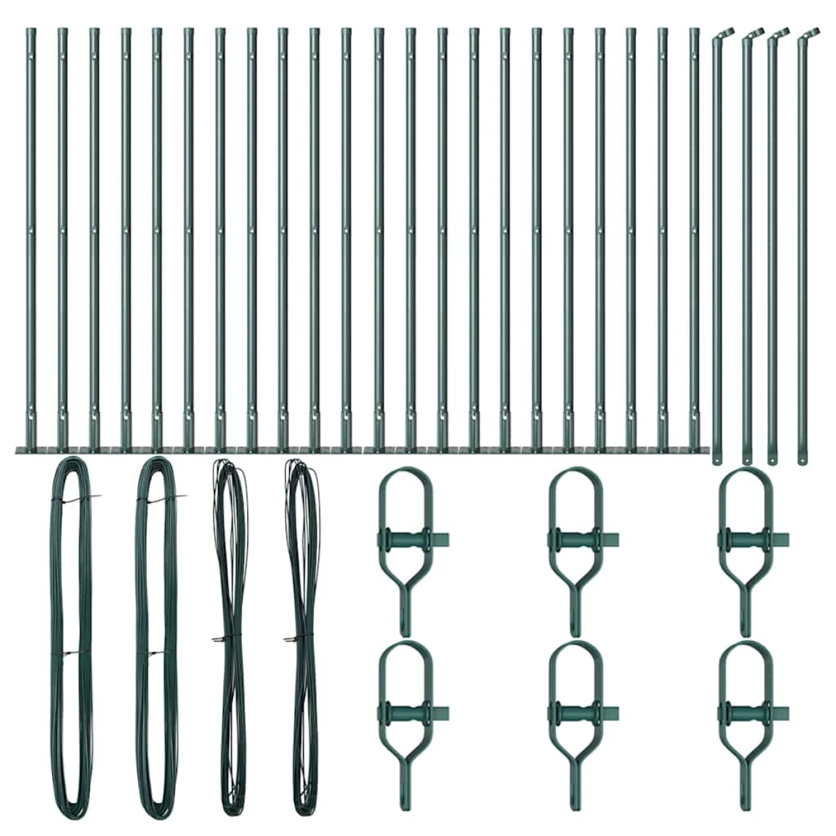 - 22 x Post, 4 x Angle post, 22 x Base plate, 22 x Plastic cap, 66 x Plastic tension wire supporter, 4 x Angle post cap, 4 x Angle post hardware, 6 x Tensioner, 2 x 25 m Binding wire, 2 x 80 m Tension wire