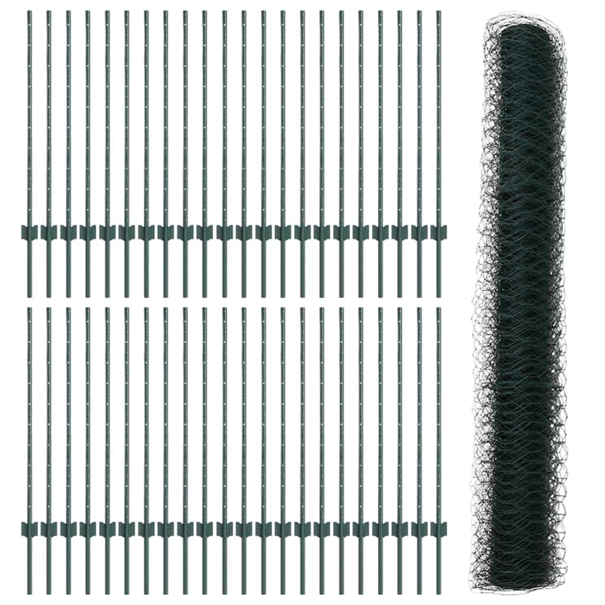 vidaXL Fence with Post Green 1 x 100 m Steel and PVC