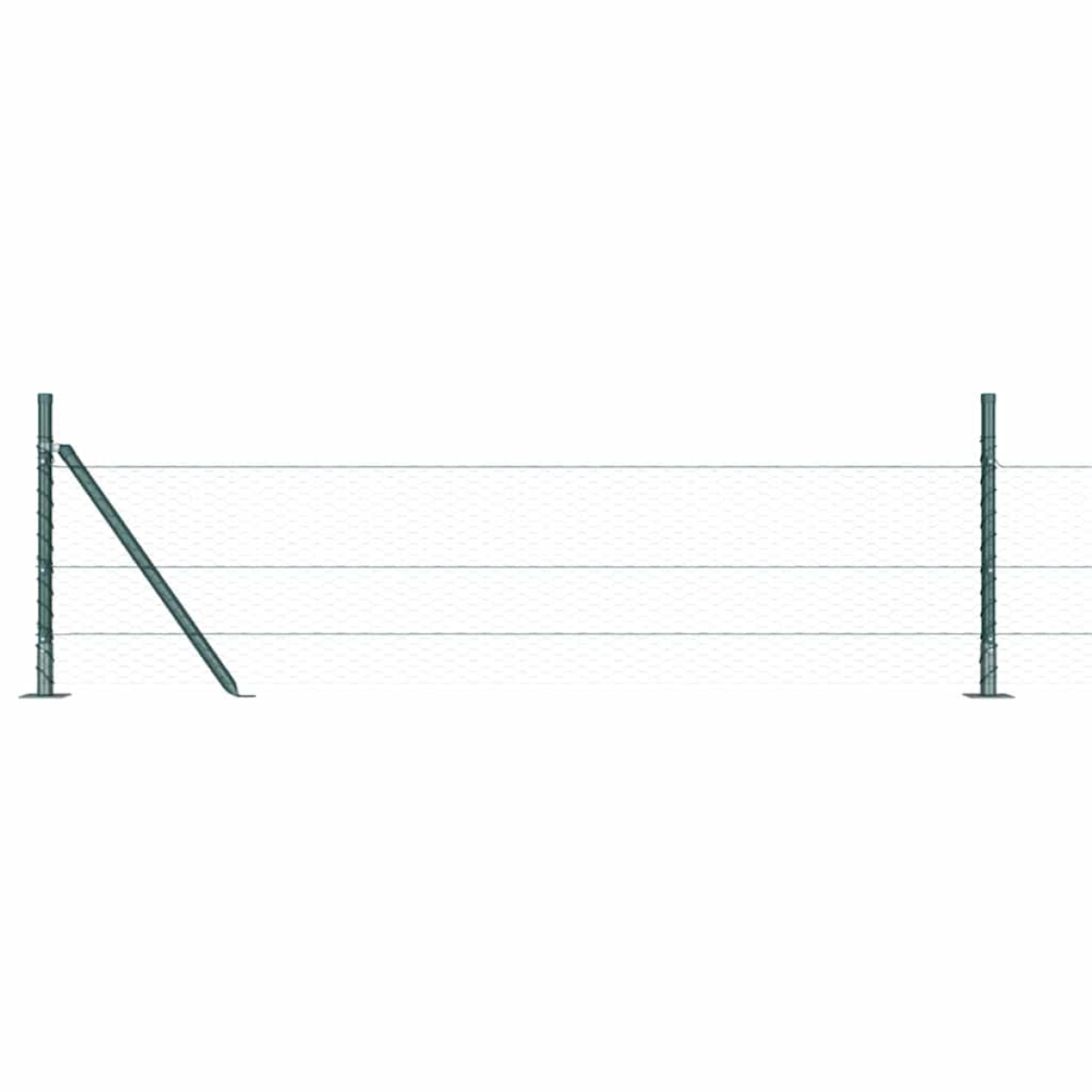- 1 x Fence roll, 5 x Post, 2 x Angle post, 5 x Base plate, 5 x Plastic cap, 15 x Plastic tension wire supporter, 2 x Angle post cap, 2 x Angle post hardware, 3 x Tensioner, 1 x 25 m Binding wire, 1 x 33 m Tension wire
