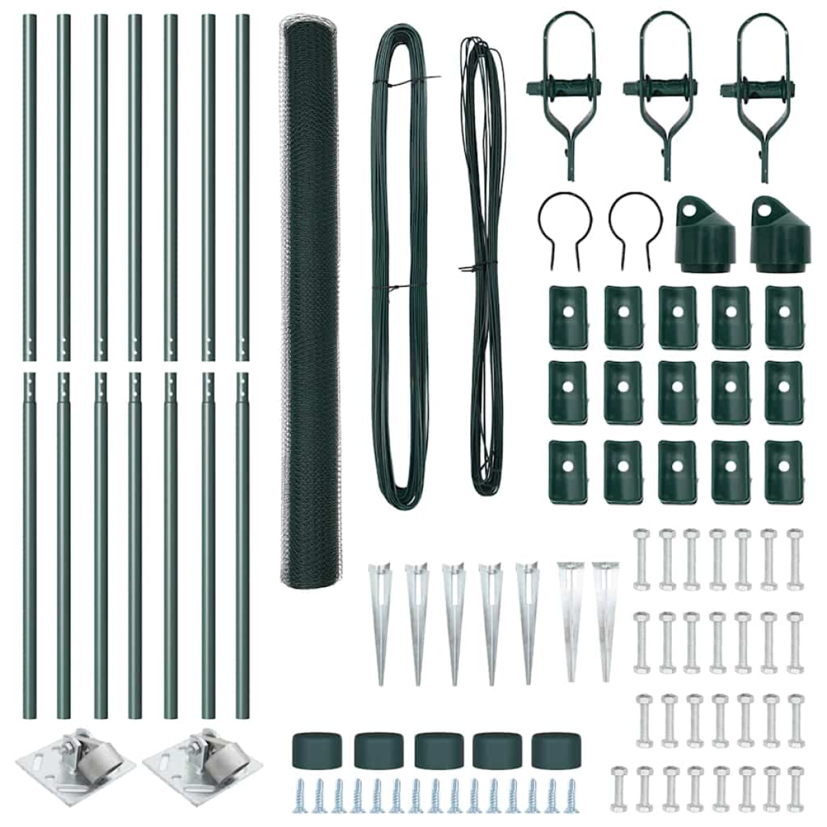 - Fence roll, spikes, anchors, wire loops