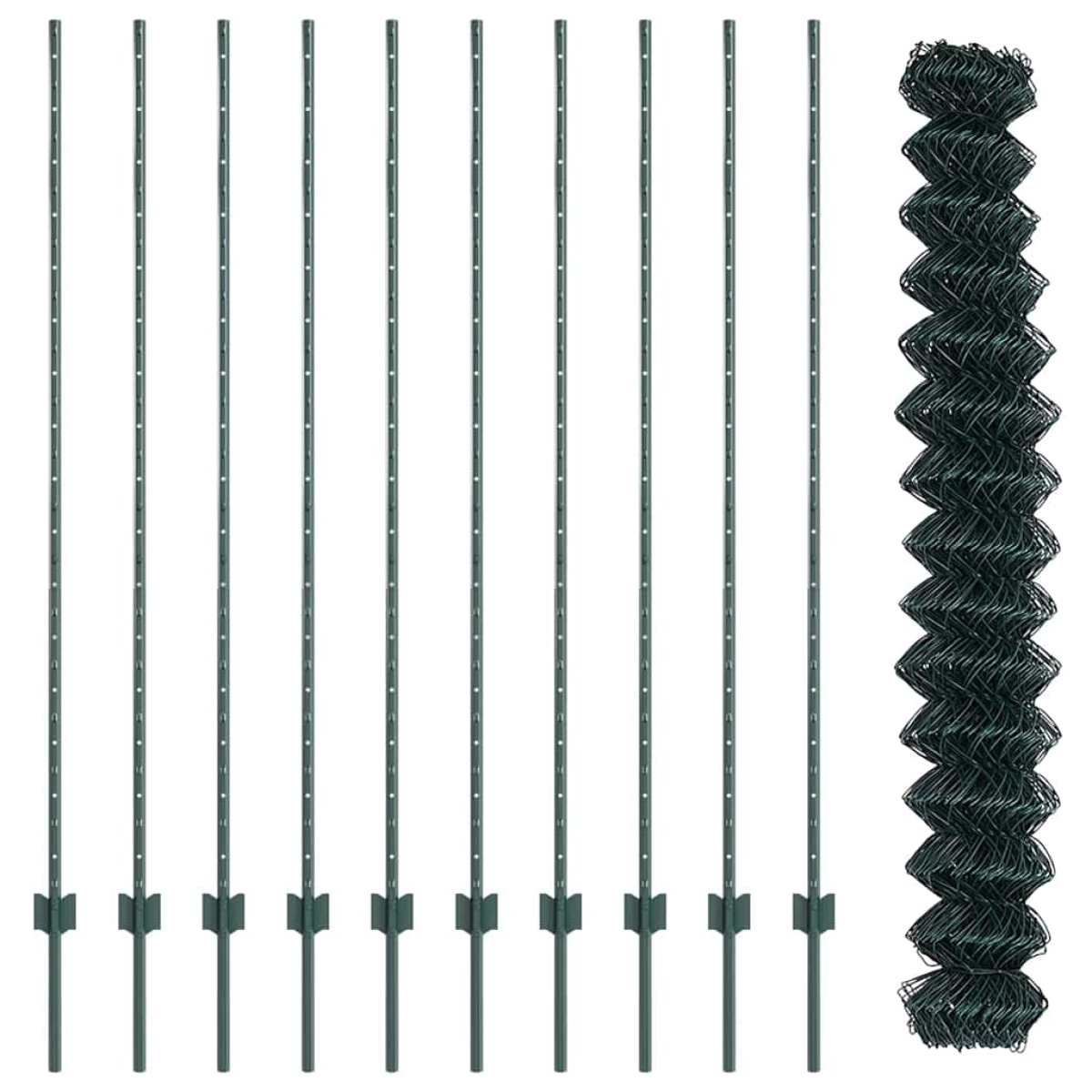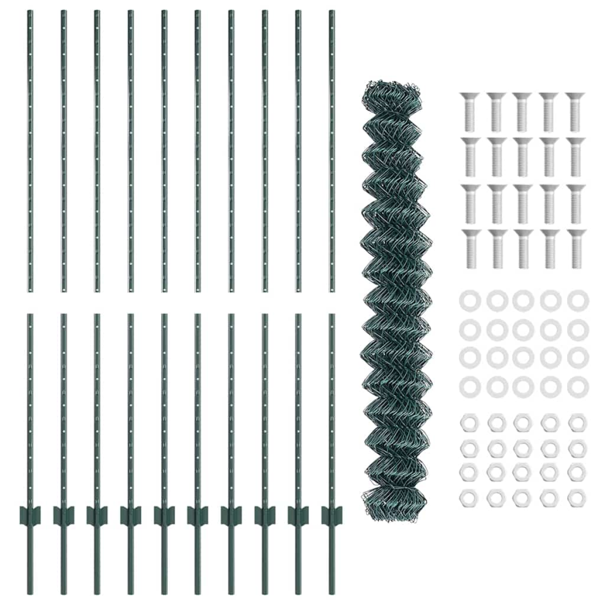 - 1 x Fence roll, 20 x Post, 1 x Set of screws and bolts
