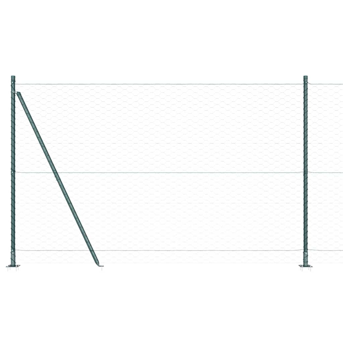 - 1 x Fence roll, 11 x Post, 2 x Angle post, 11 x Base plate, 11 x Plastic cap, 33 x Plastic tension wire supporter, 2 x Angle post cap, 2 x Angle post hardware, 3 x Tensioner, 1 x 25 m Binding wire, 1 x 80 m Tension wire