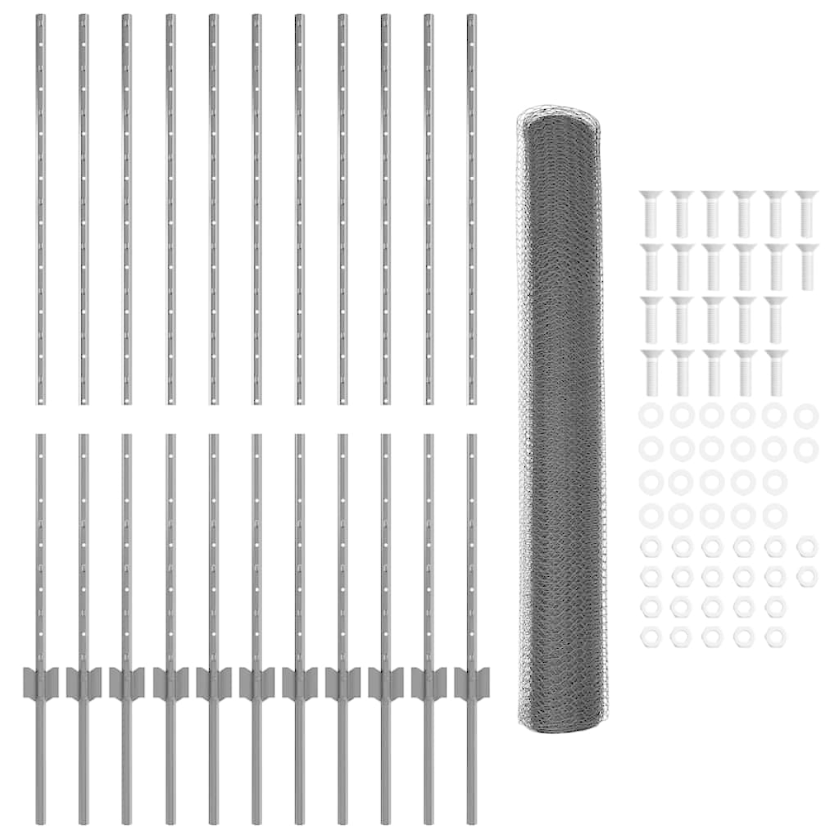 - 1 x Fence roll, 44 x Post, 1 x Set of screws and bolts