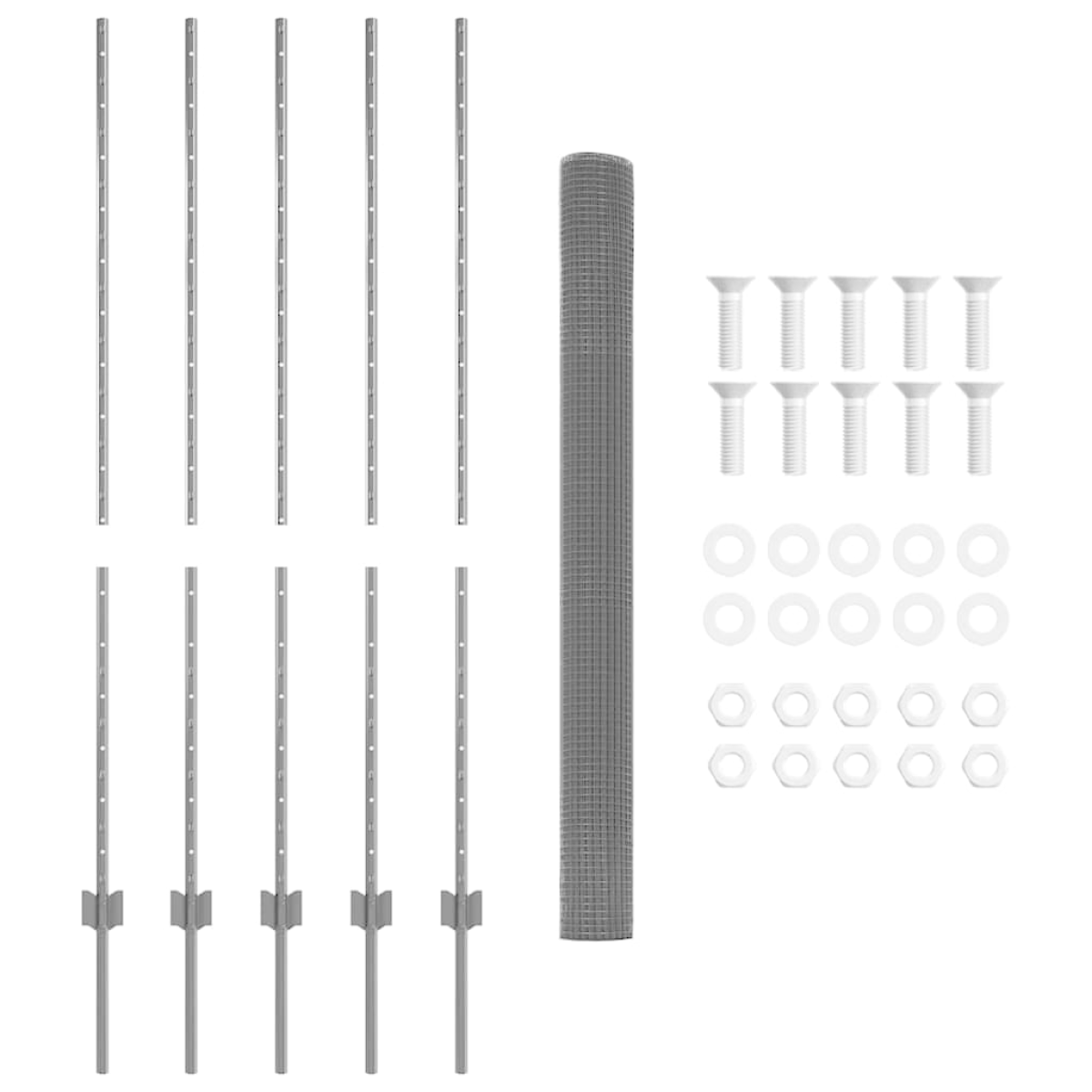 - 1 x Fence roll, 20 x Post, 1 x Set of screws and bolts