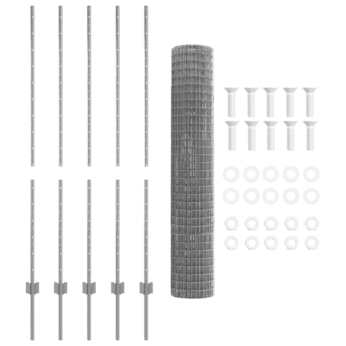 - 1 x Fence roll, 20 x Post, 1 x Set of screws and bolts