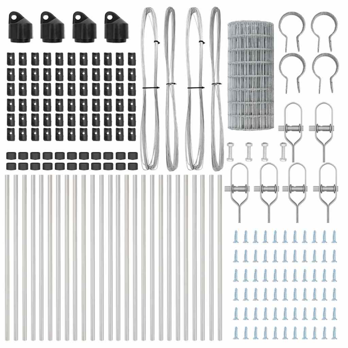 - Fence post, wire mesh, wire fasteners