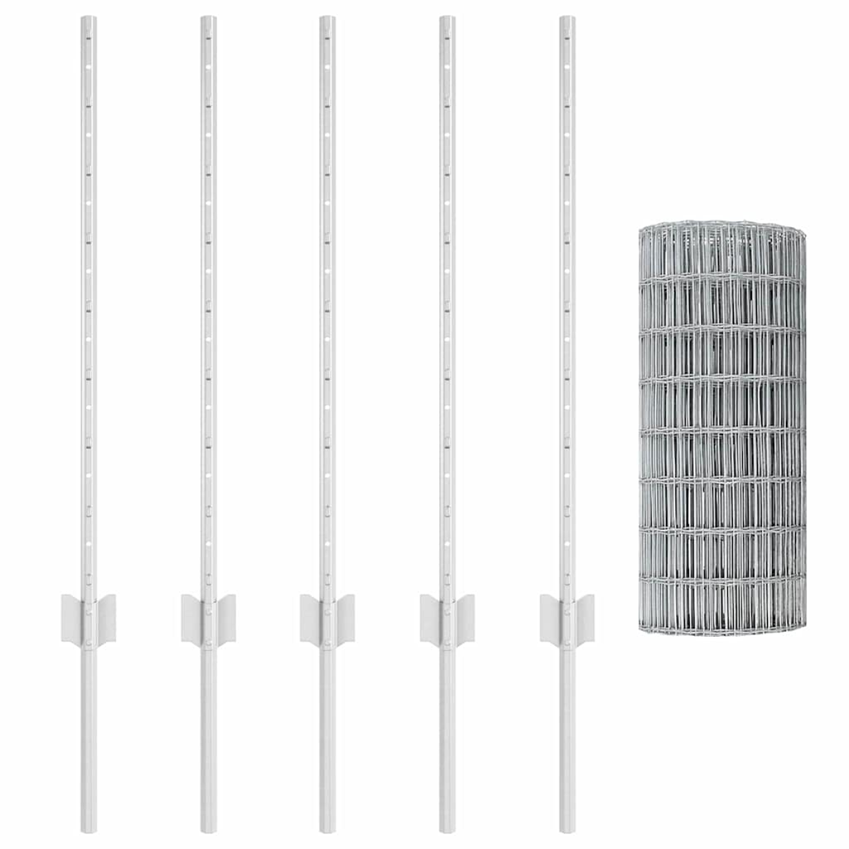 vidaXL Fence with Post Silver 0.8 x 10 m Steel