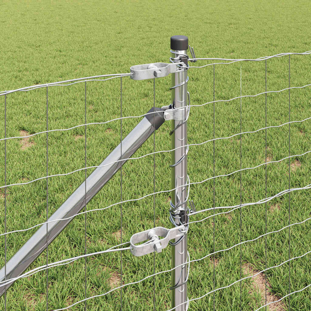 - 1 x Euro fence, 5 x Post, 2 x Angle post, 5 x Spike, 2 x Angle spike, 5 x Plastic cap, 15 x Plastic tension wire supporter, 2 x Angle post cap, 2 x Angle post hardware, 3 x Tensioner, 1 x 25 m Binding wire, 1 x 33 m Tension wire