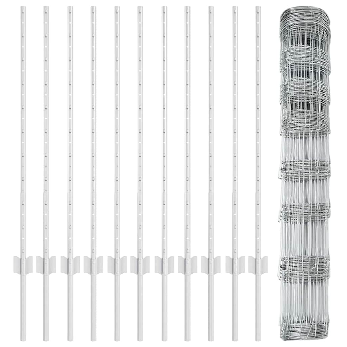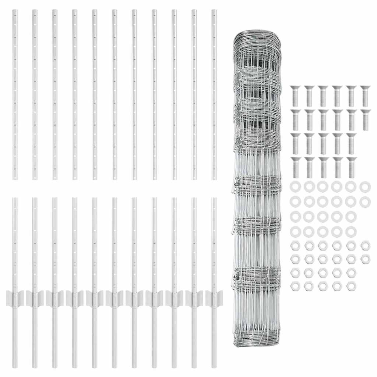 - 1 x Fence roll, 44 x Post, 1 x Set of screws and bolts