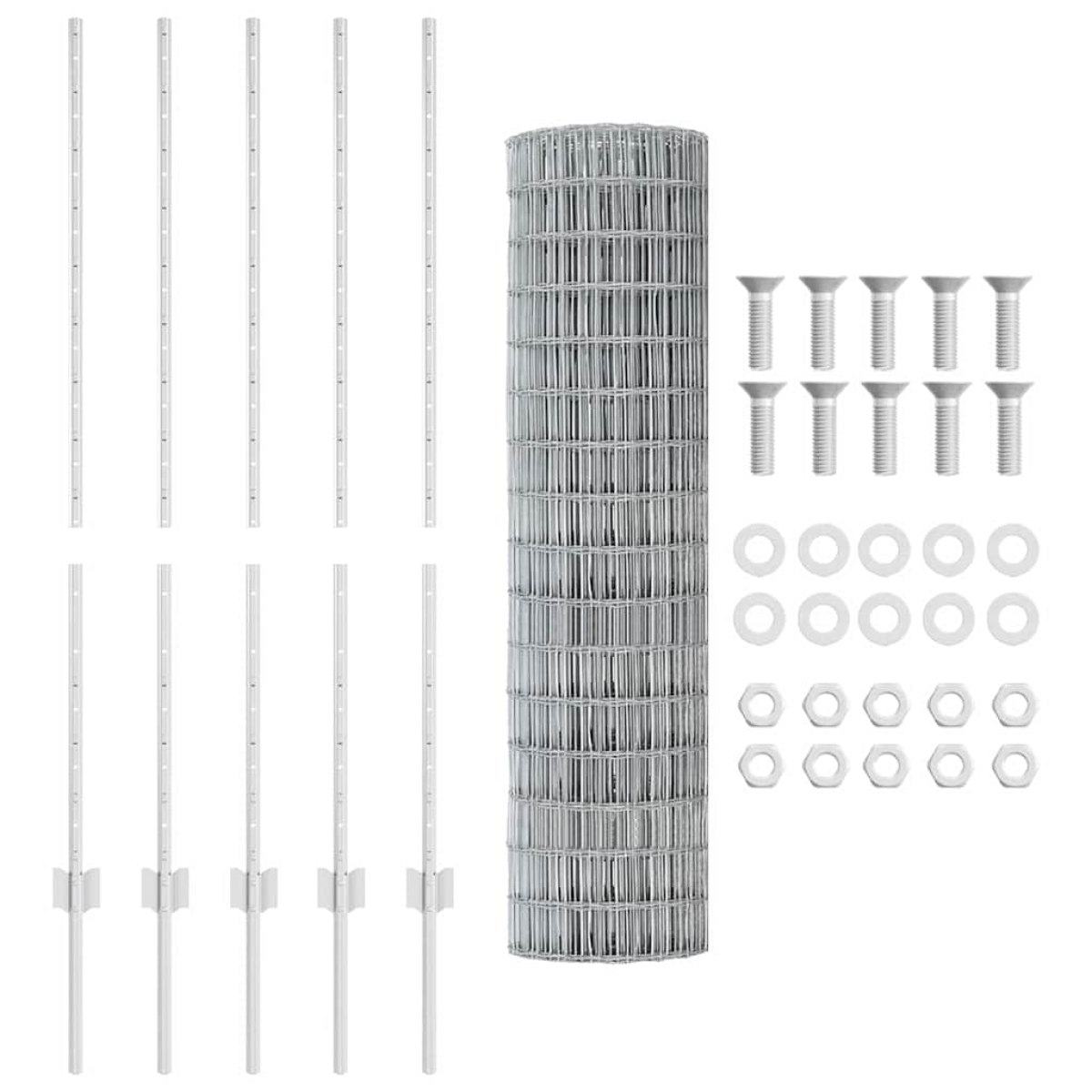 - 1 x Fence roll, 20 x Post, 1 x Set of screws and bolts