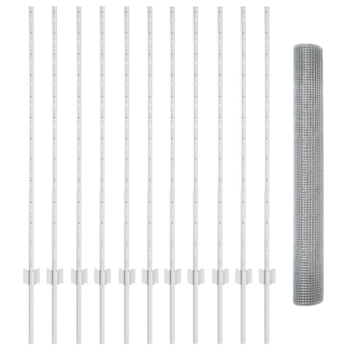 - 1 x Fence roll, 44 x Post, 1 x Set of screws and bolts