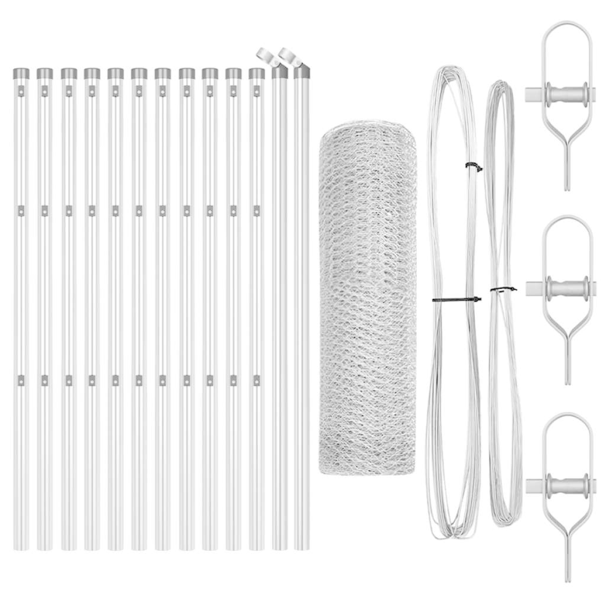 - Mesh fence, posts, installation hardware